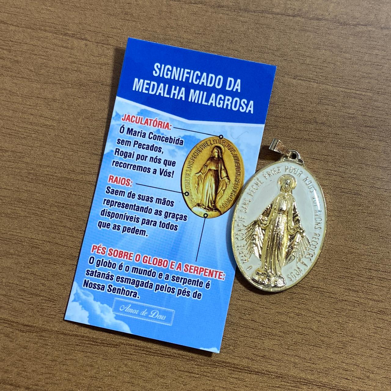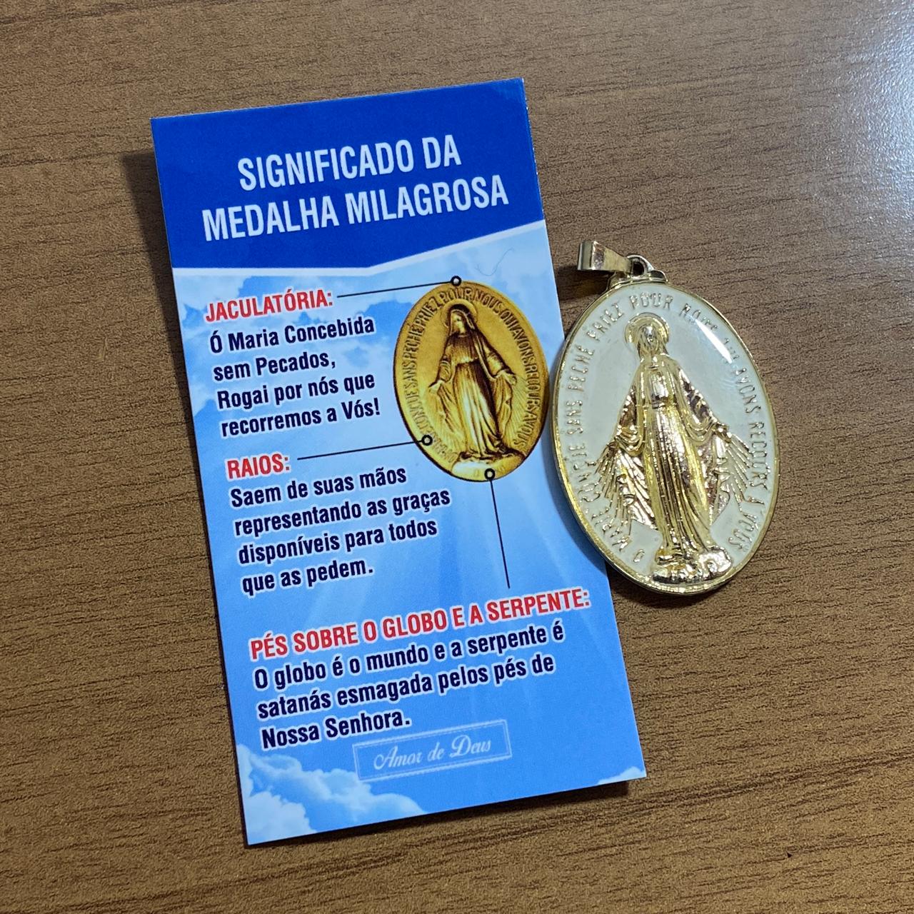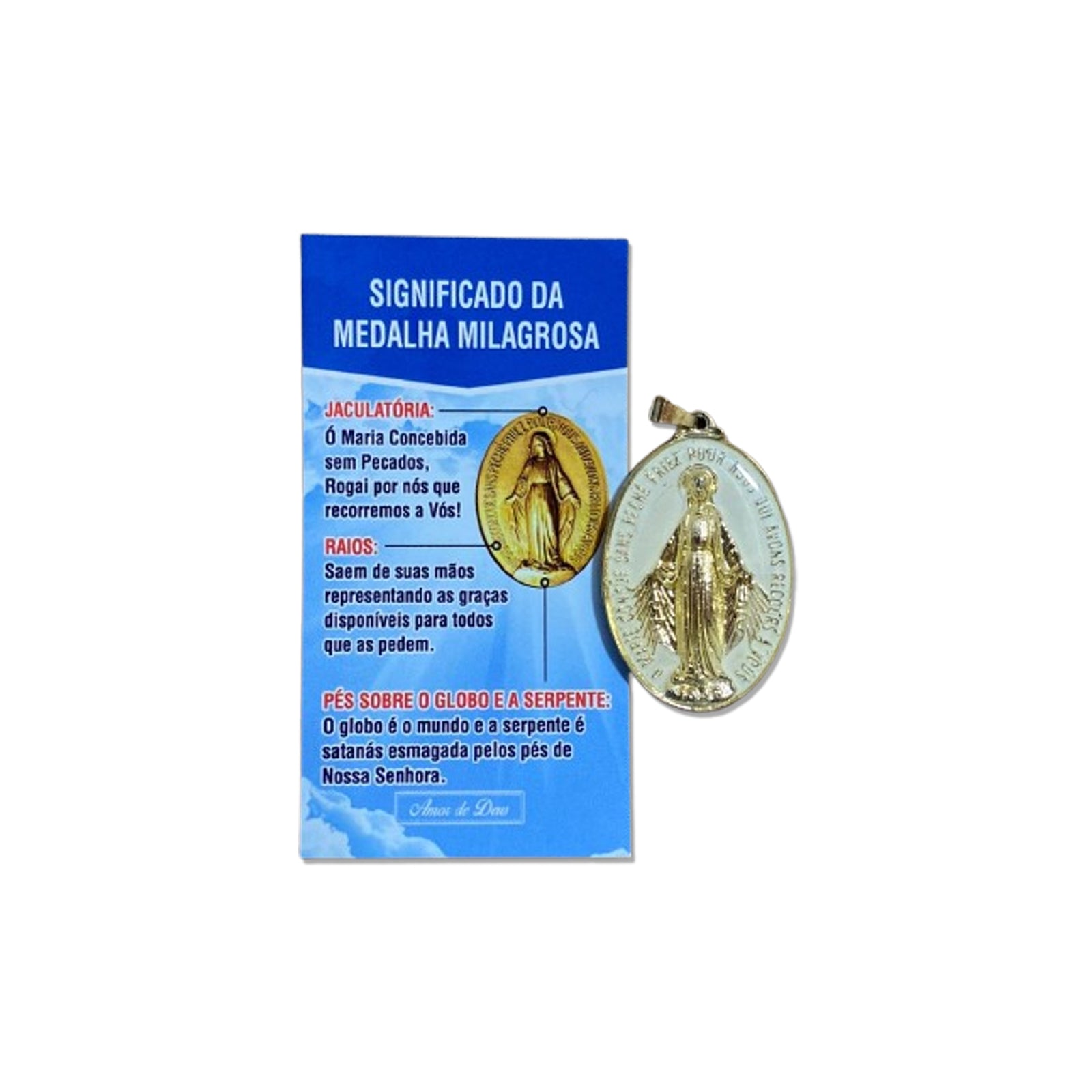 MEDALHA MILAGROSA RESINADA NOSSA SENHORA DAS GRAÇAS BRANCA COM FOLHETO (1 UNIDADE)