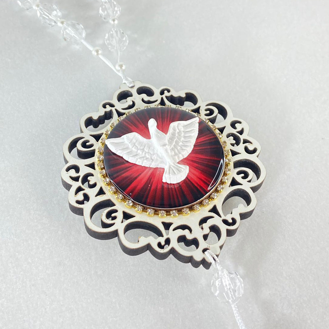 MEDALHÃO DE PORTA RESINADO COM STRASS DIVINO ESPÍRITO SANTO EM RELEVO (1 UNIDADE)