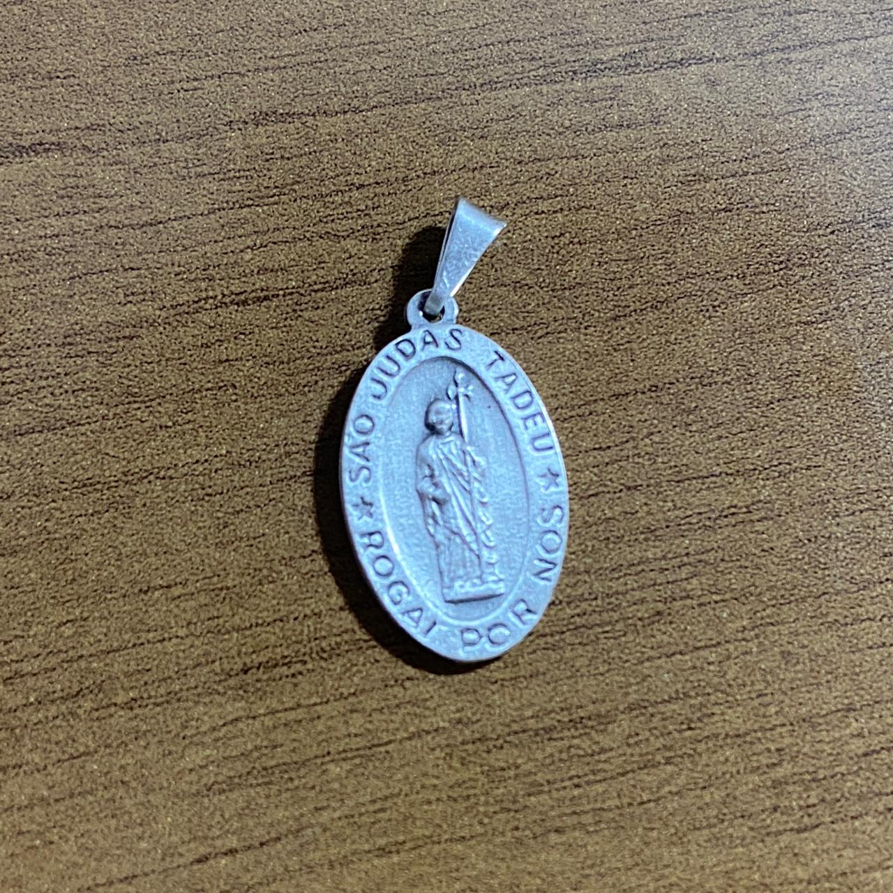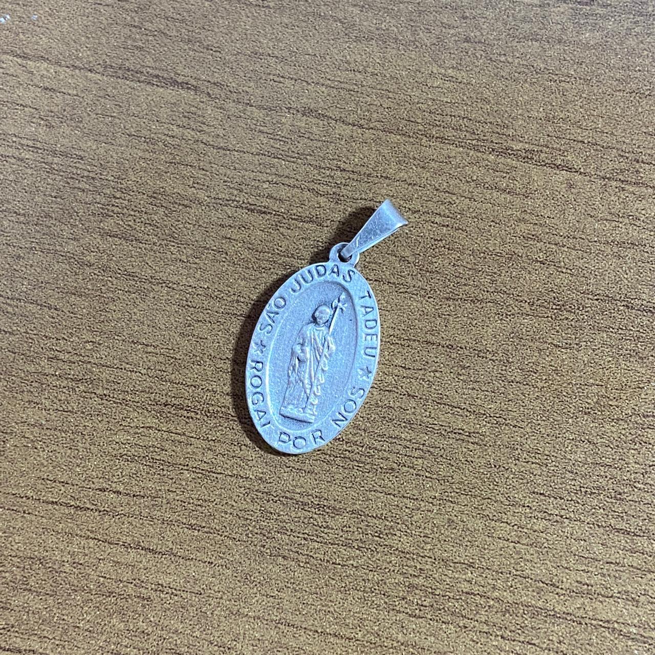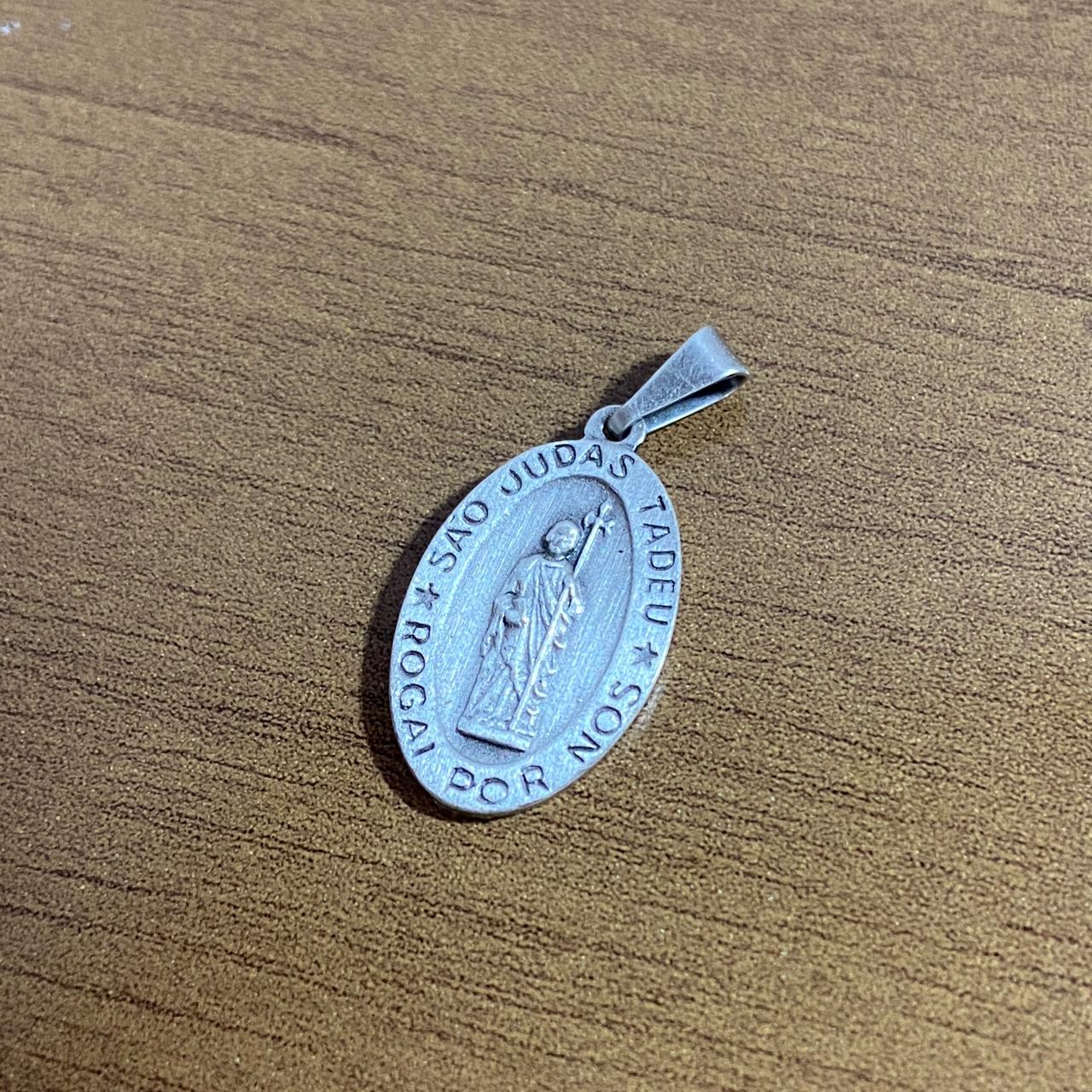 PINGENTE PRATA VELHA OVAL SÃO JUDAS TADEU EM RELEVO (6 UNIDADES)