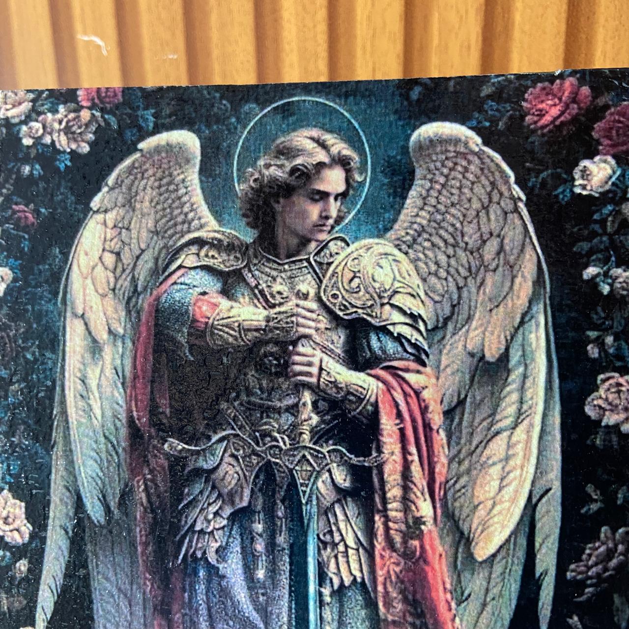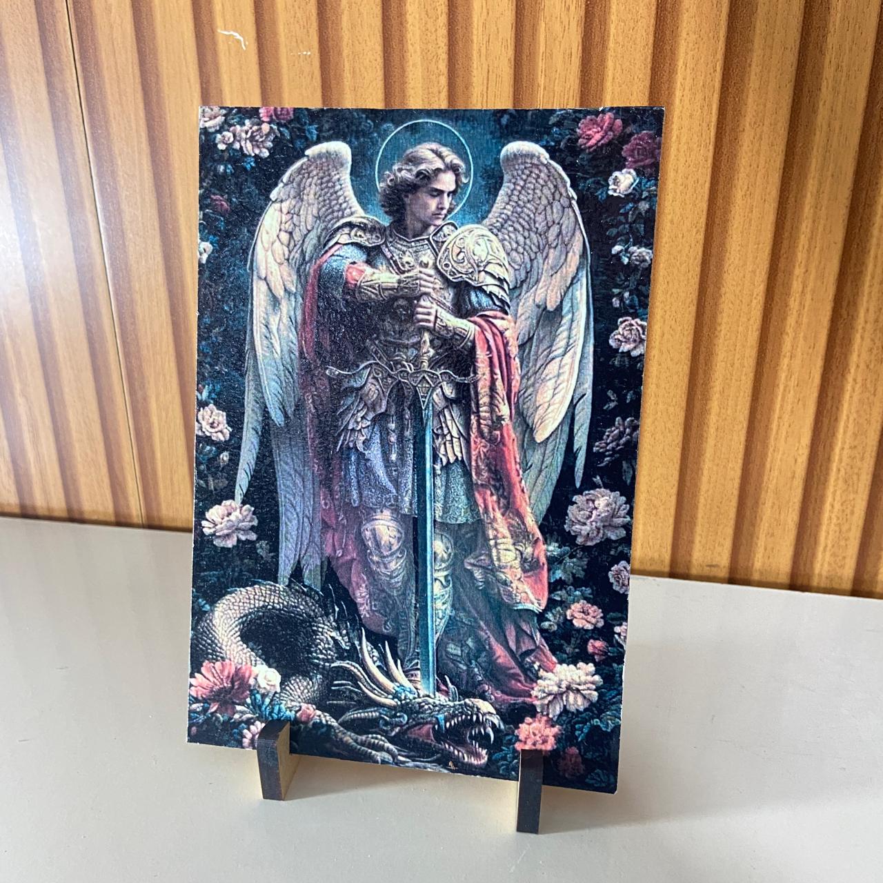 PLAQUINHA DE MESA MDF RESINADO SÃO MIGUEL ARCANJO 19CM x 13CM (1 UNIDADE)