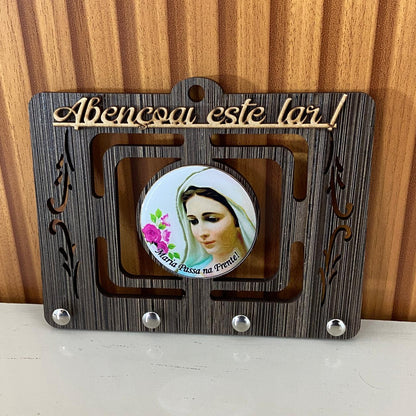 O porta-chave vazado resinado é um item encantador e funcional para organizar suas chaves com estilo e devoção. Feito com material de alta qualidade e com um acabamento resinado durável, ele apresenta um design vazado elegante. Adquira agora e mantenha suas chaves organizadas com um toque de proteção divina.