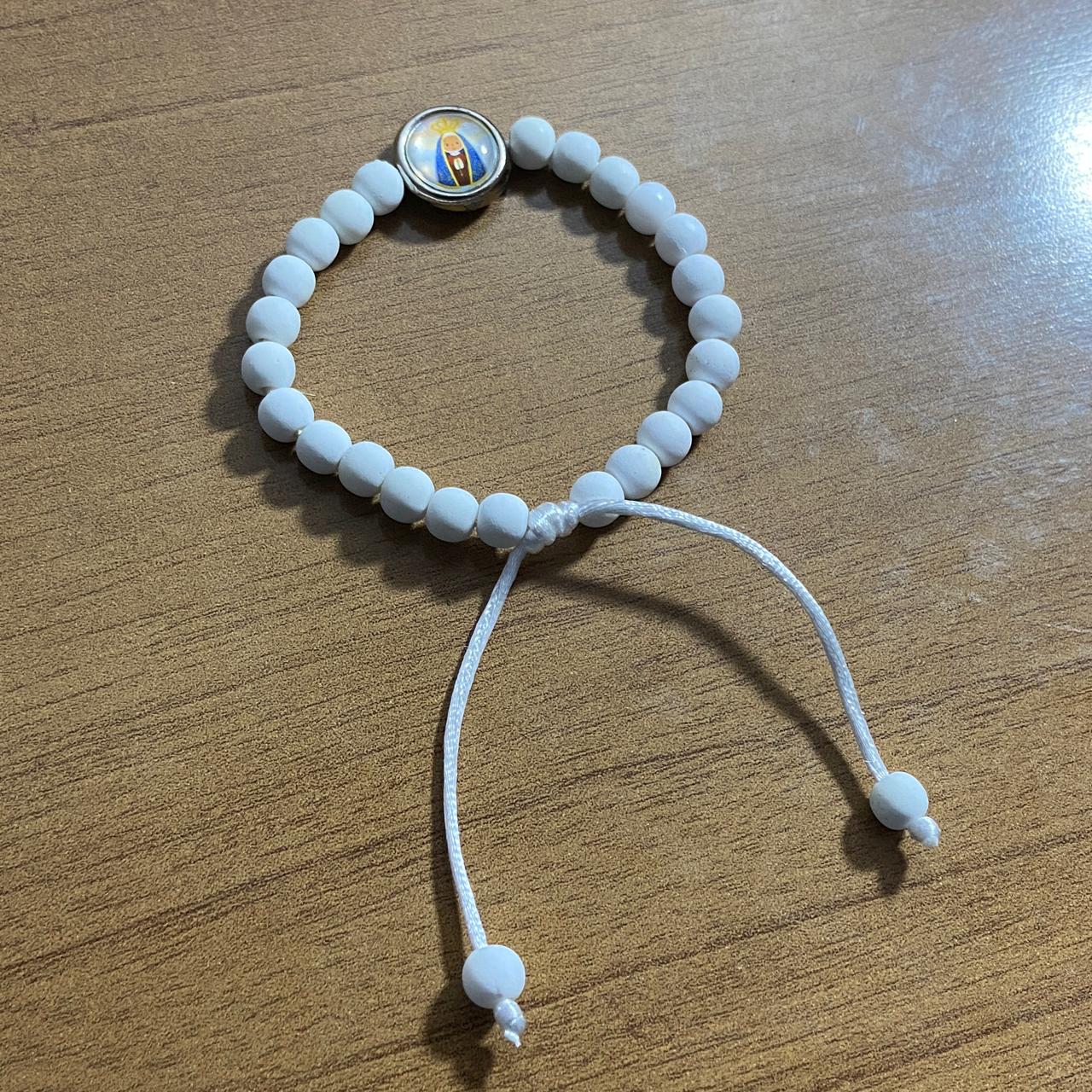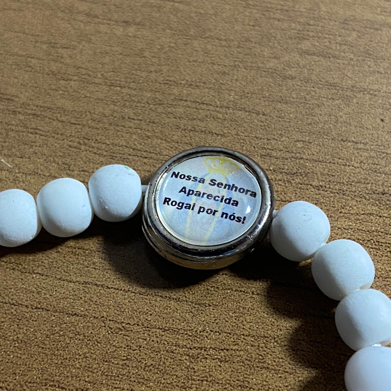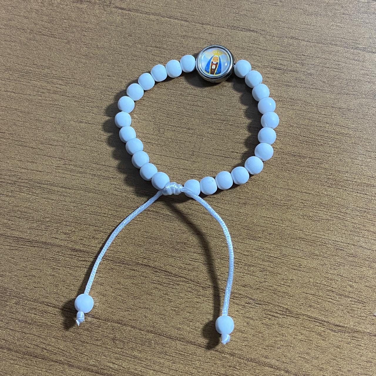 PULSEIRA BRANCA REGULÁVEL COM MEDALHA RESINADA NOSSA SENHORA APARECIDA (6 UNIDADES)