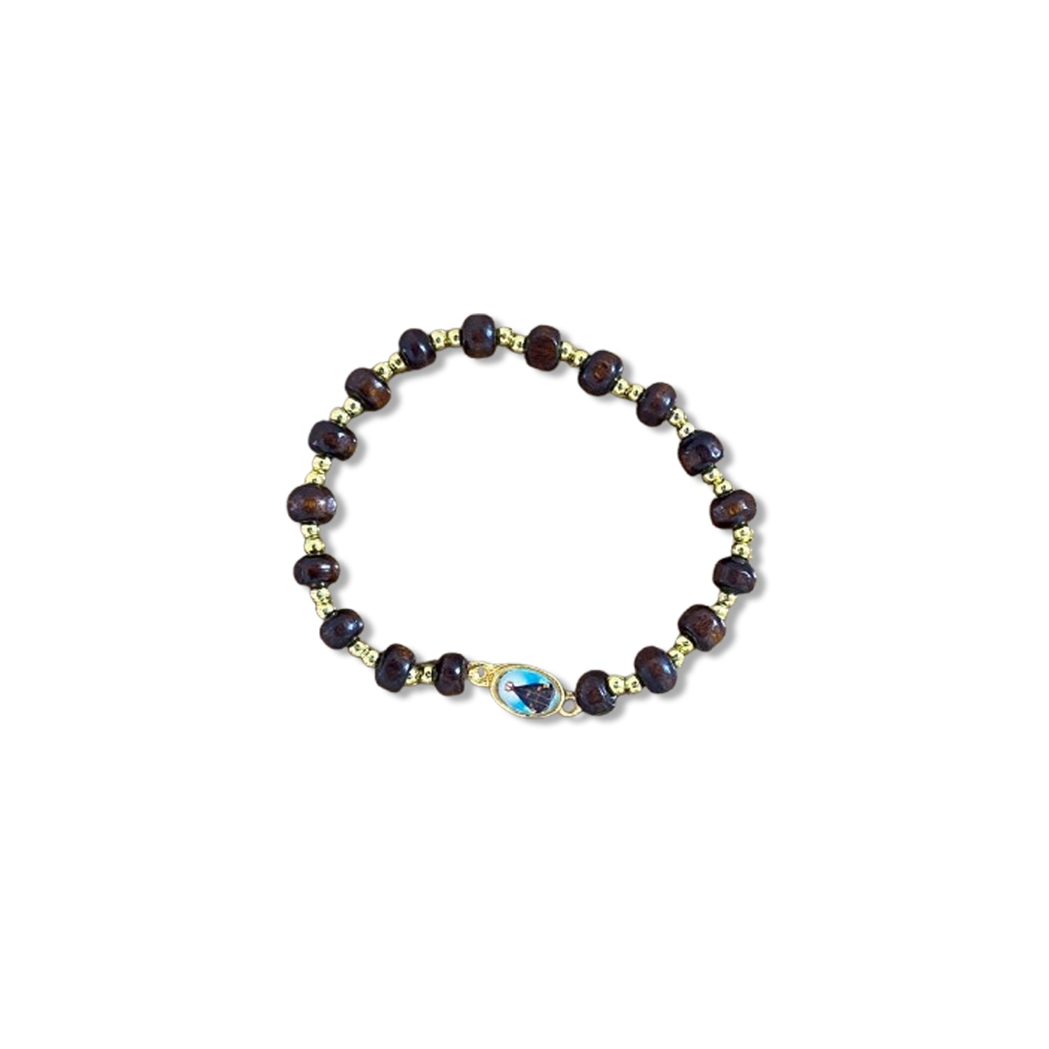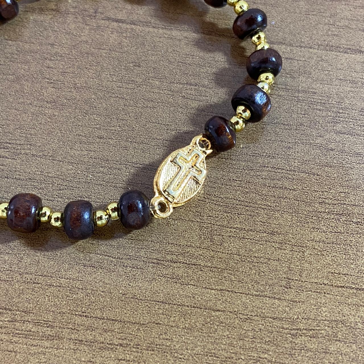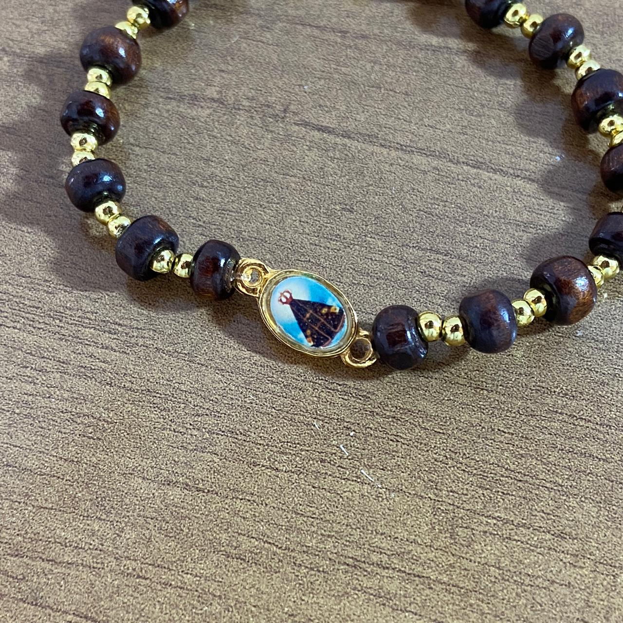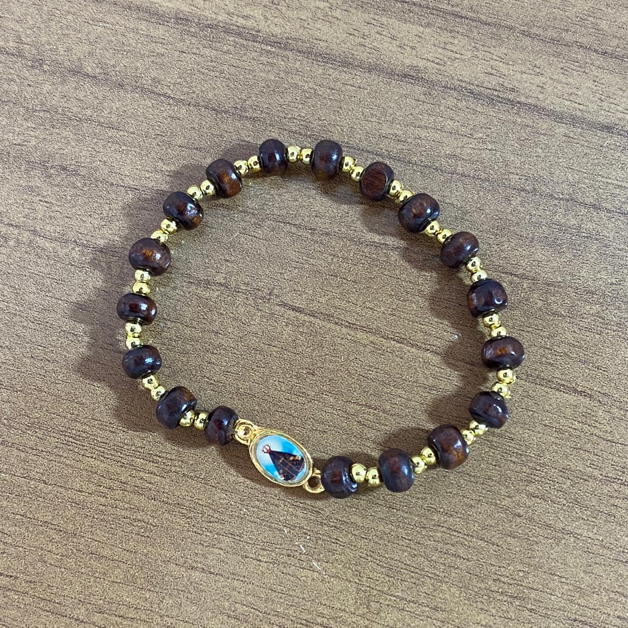 PULSEIRA DE MADEIRA COM MEDALHA NOSSA SENHORA APARECIDA (01 UNIDADE)