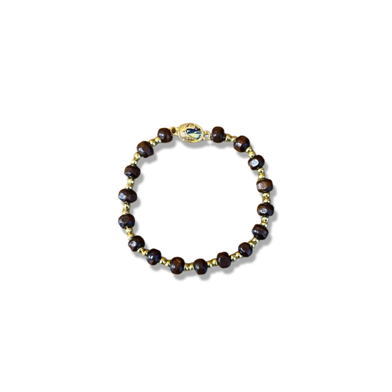 PULSEIRA DE MADEIRA COM MEDALHA NOSSA SENHORA DA IMACULADA CONCEIÇÃO (01 UNIDADE)