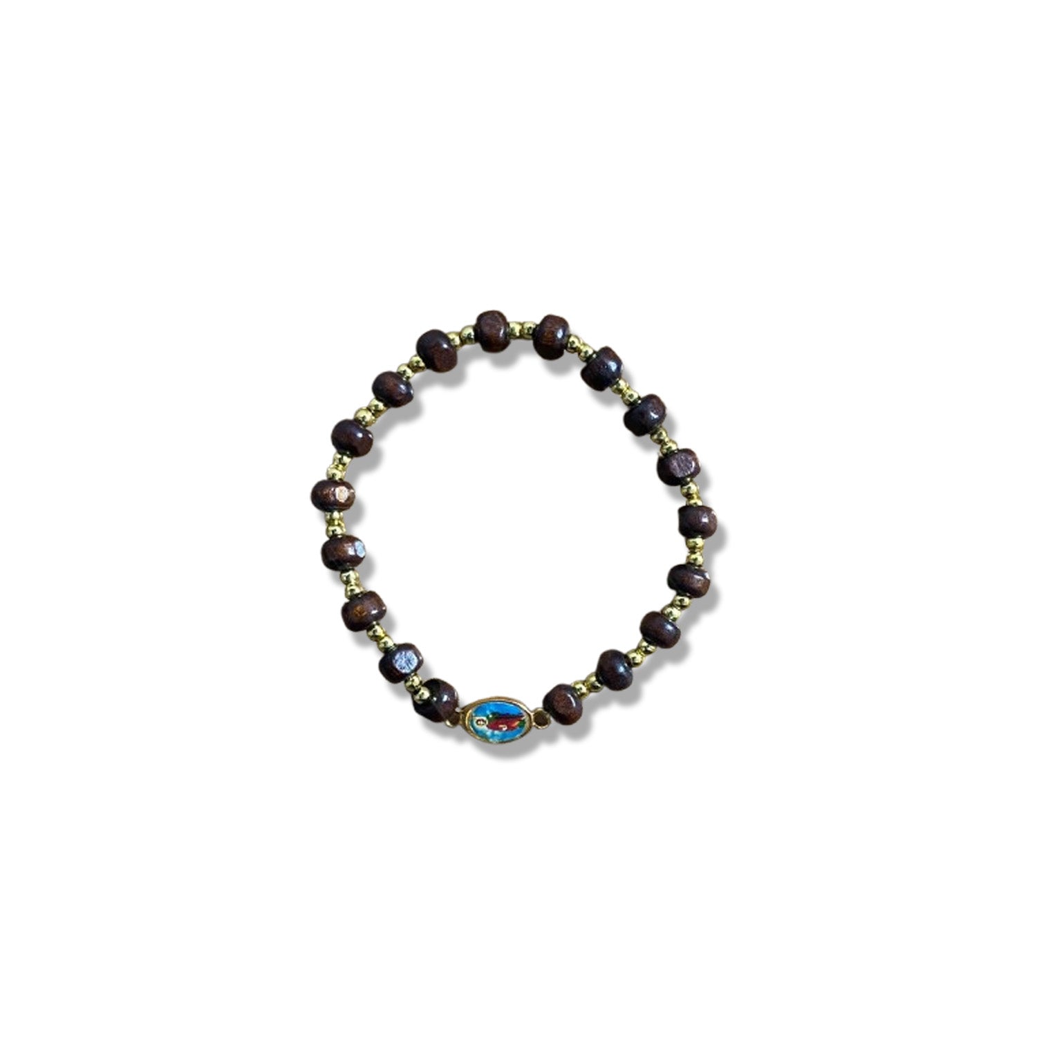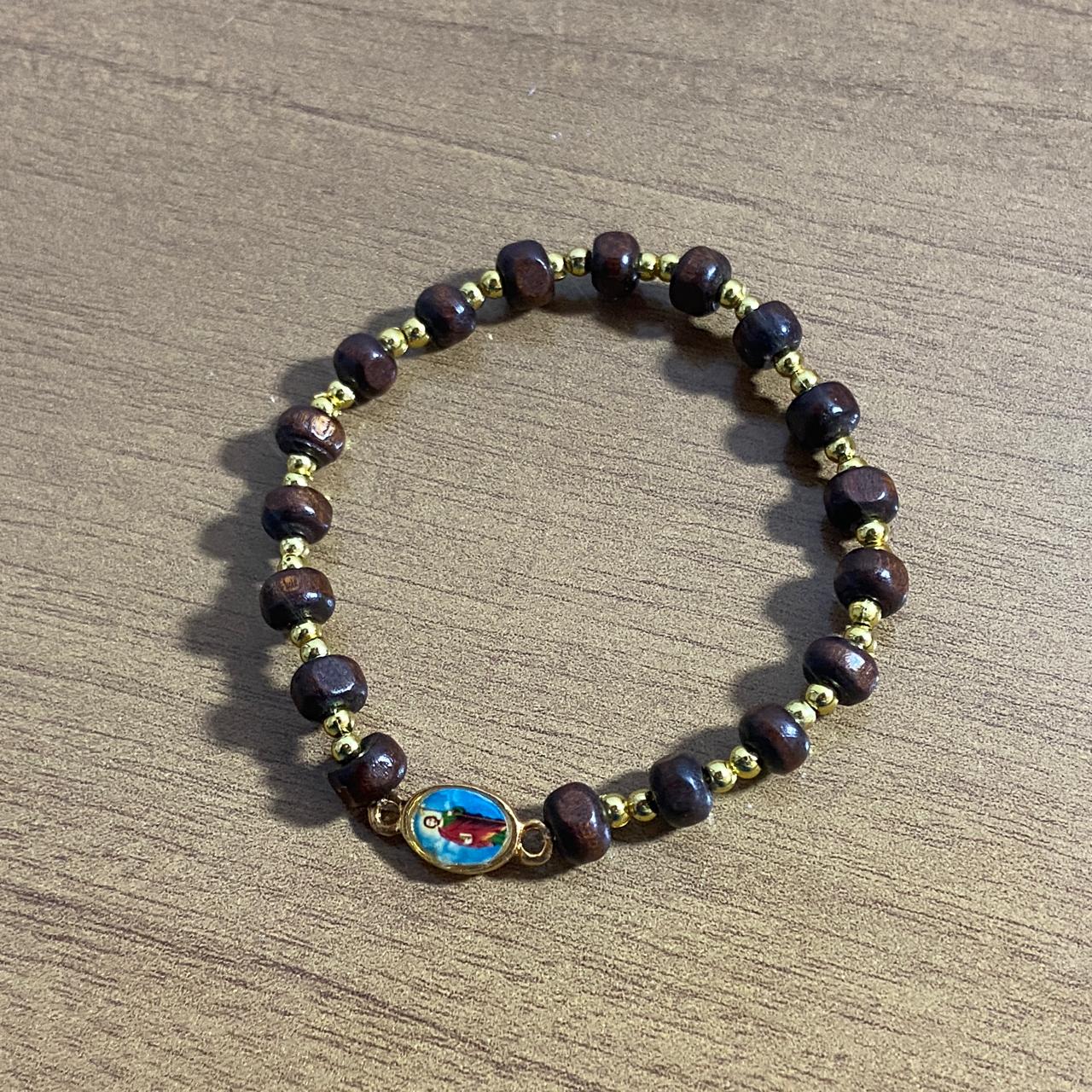 PULSEIRA DE MADEIRA COM MEDALHA SÃO JUDAS TADEU (01 UNIDADE)
