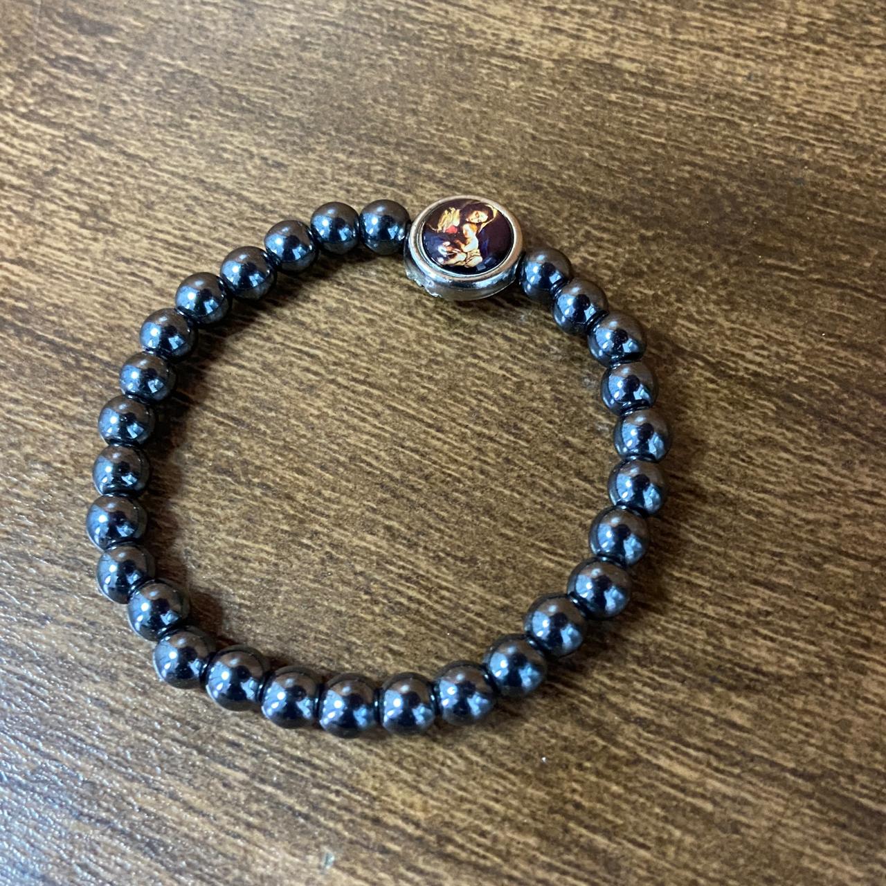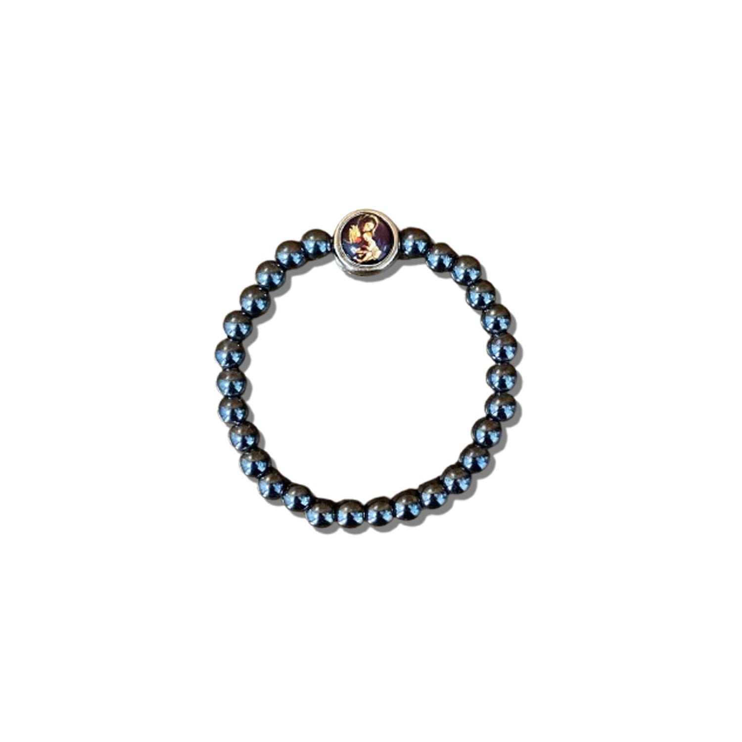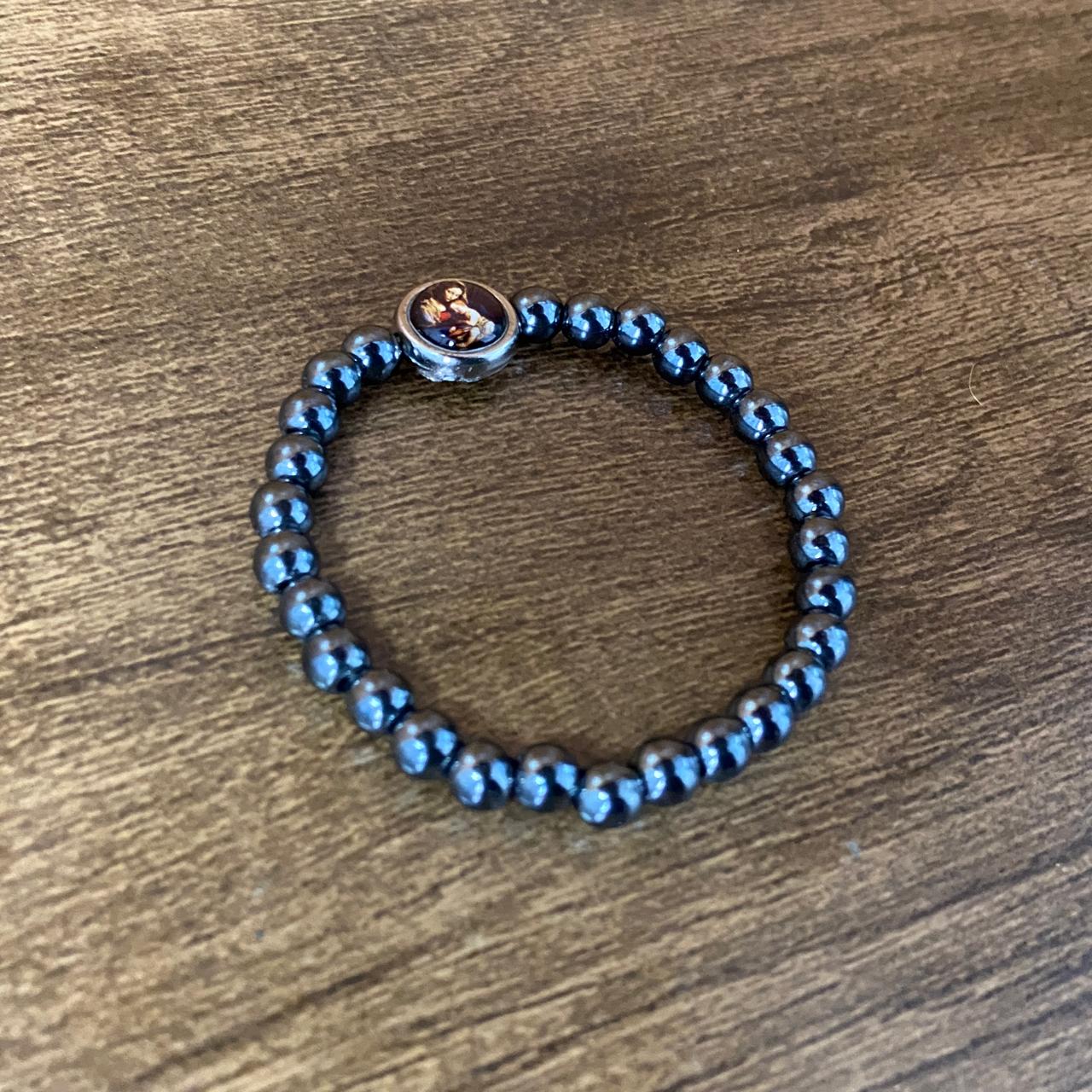 PULSEIRA HEMATITA MEDALHA RESINADA DIVINA PROVIDÊNCIA ( 5 UNIDADES)