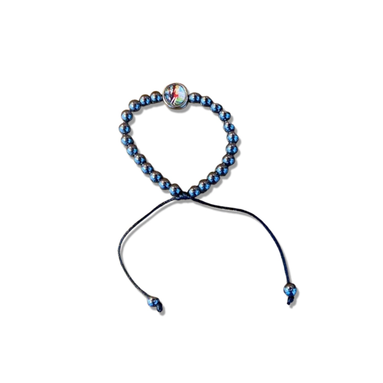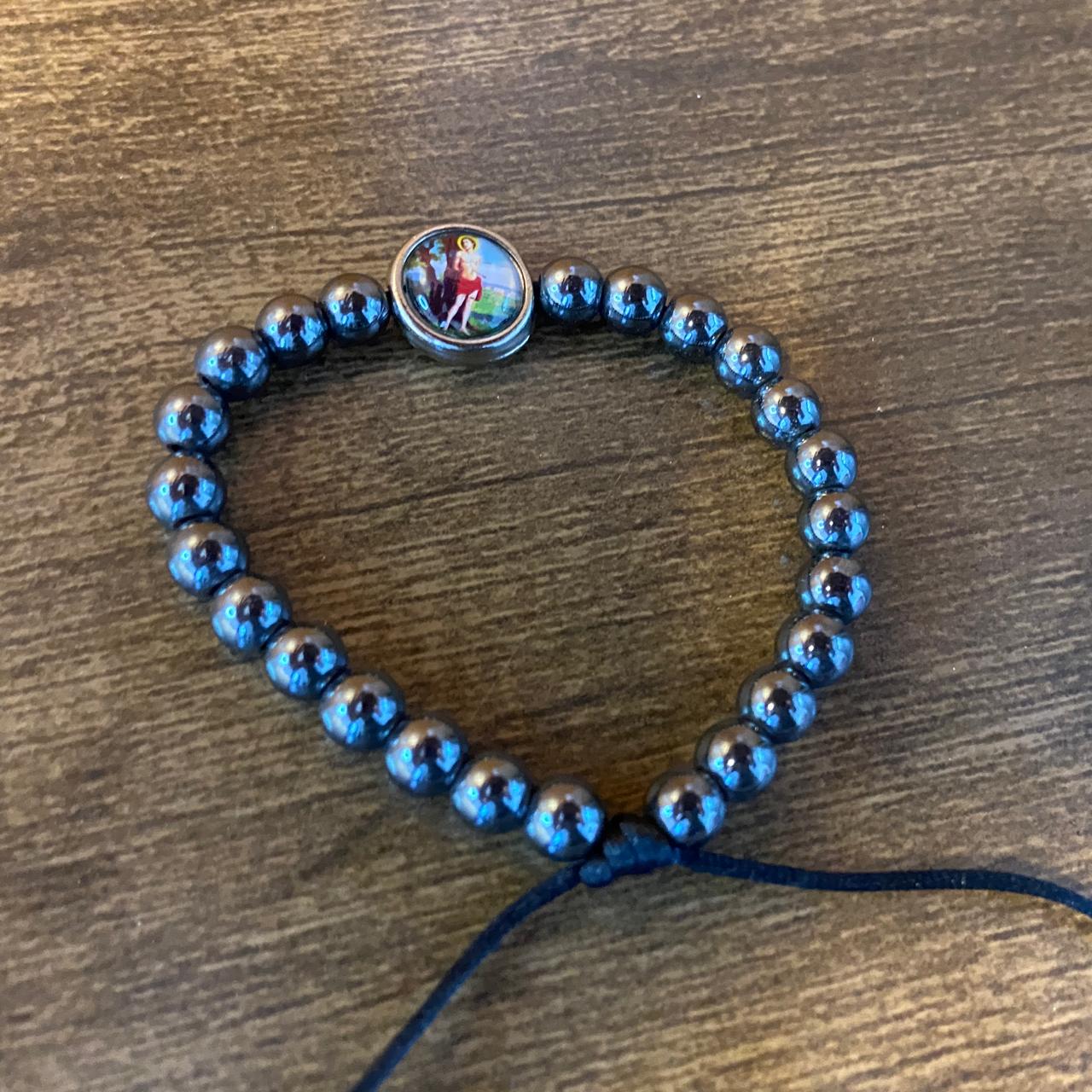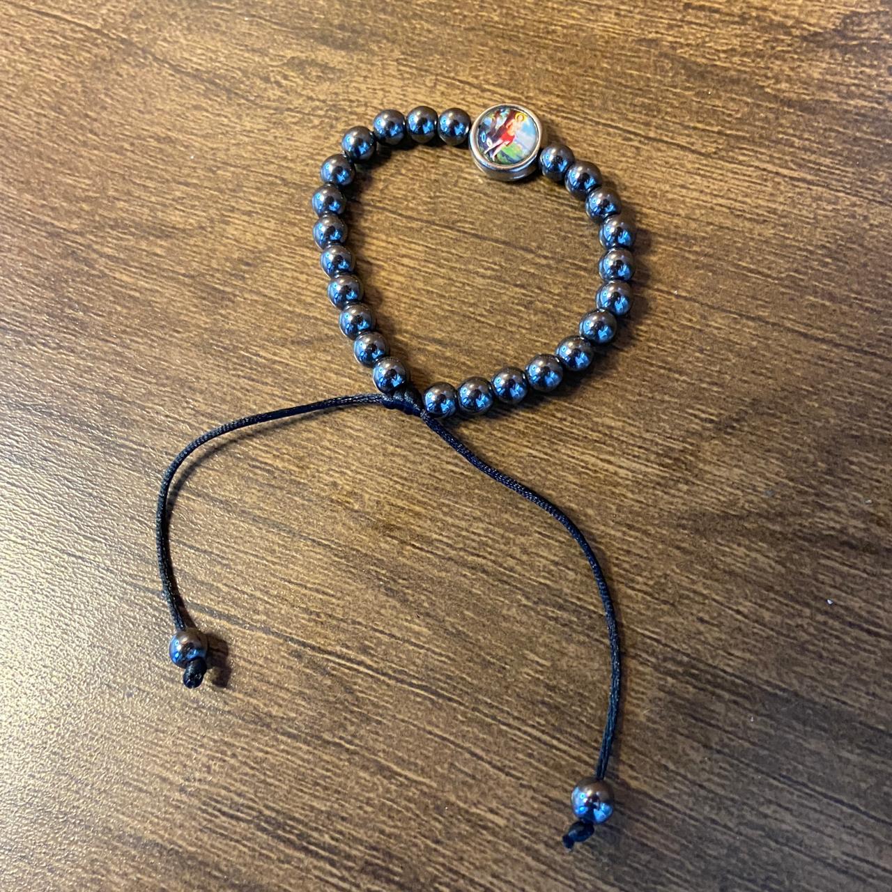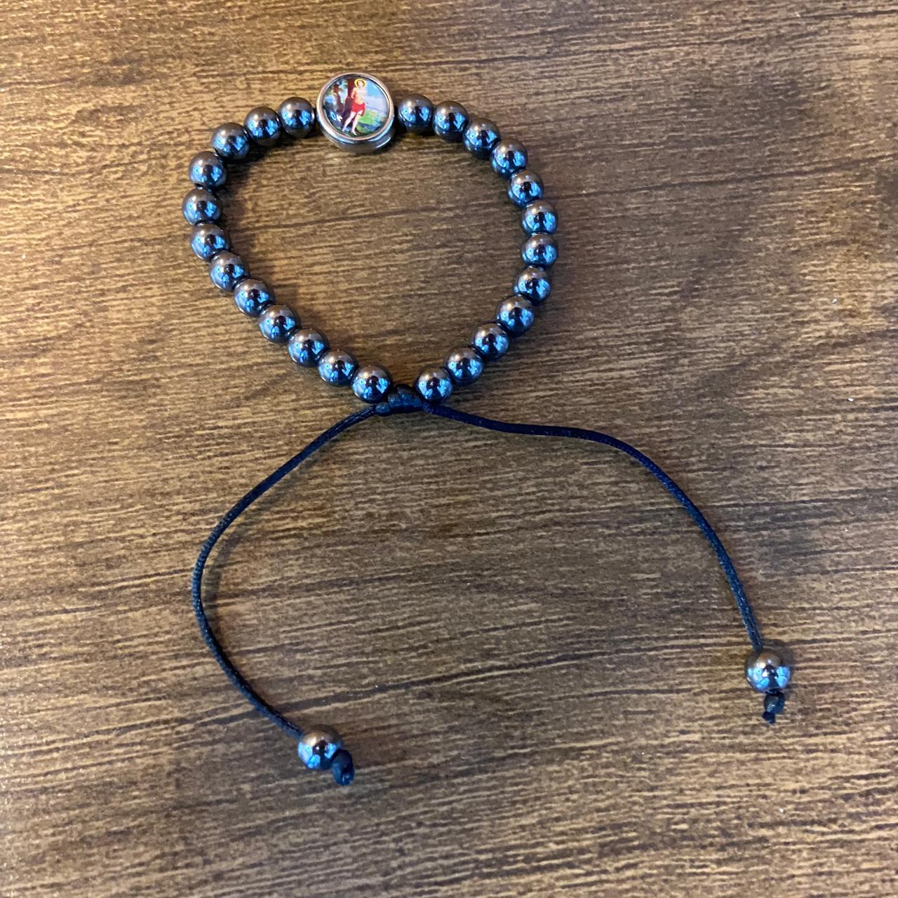 PULSEIRA HEMATITA REGULÁVEL COM MEDALHA RESINADA SÃO SEBASTIÃO (6 UNIDADES)