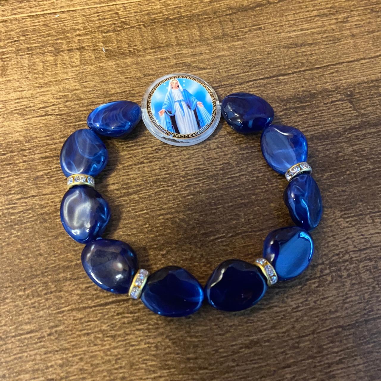 PULSEIRA PEDRARIAS COM MEDALHA RESINADA NOSSA SENHORA DAS GRAÇAS (03 UNIDADES)