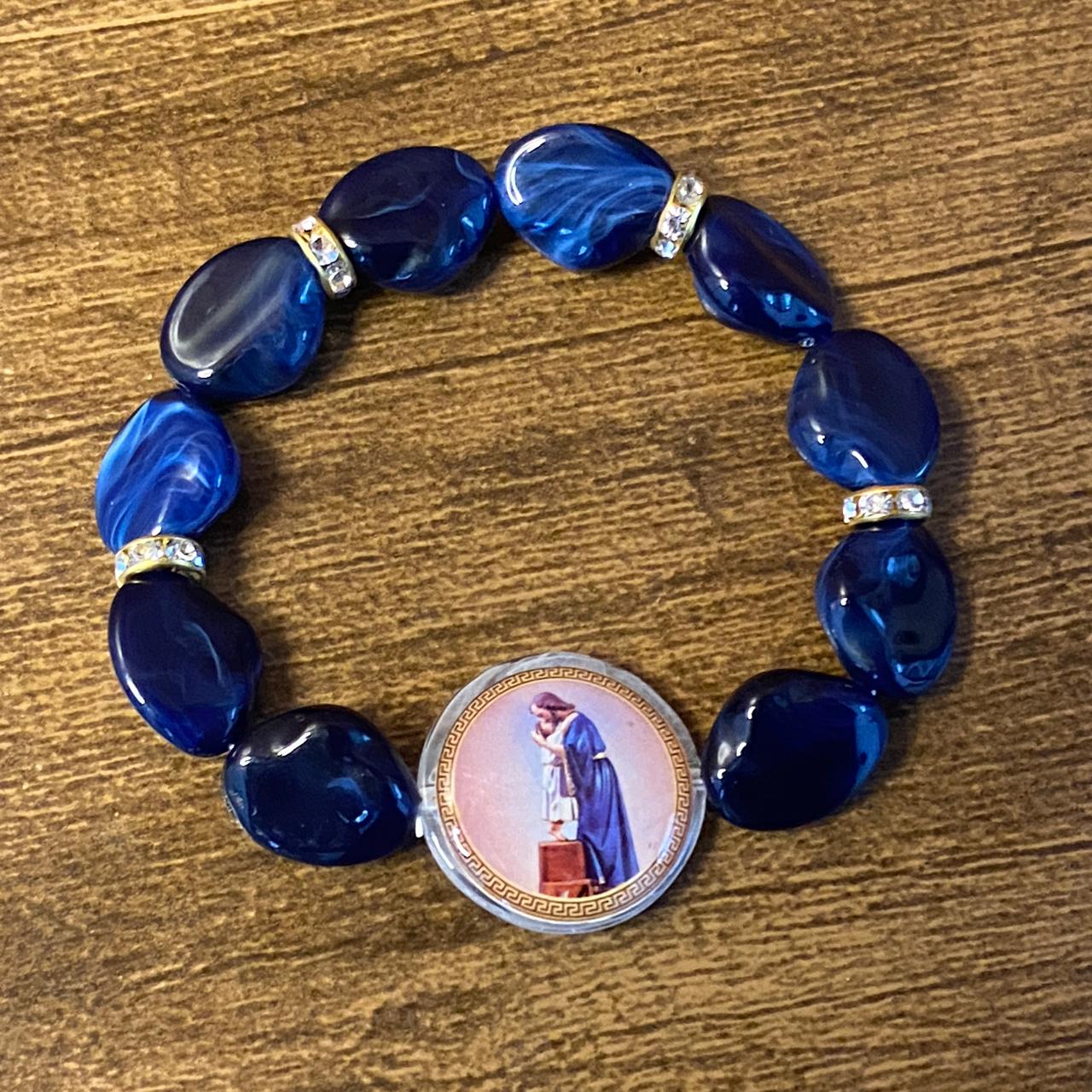 PULSEIRA PEDRARIAS COM MEDALHA RESINADA SÃO JOSÉ AFETUOSO (03 UNIDADES)