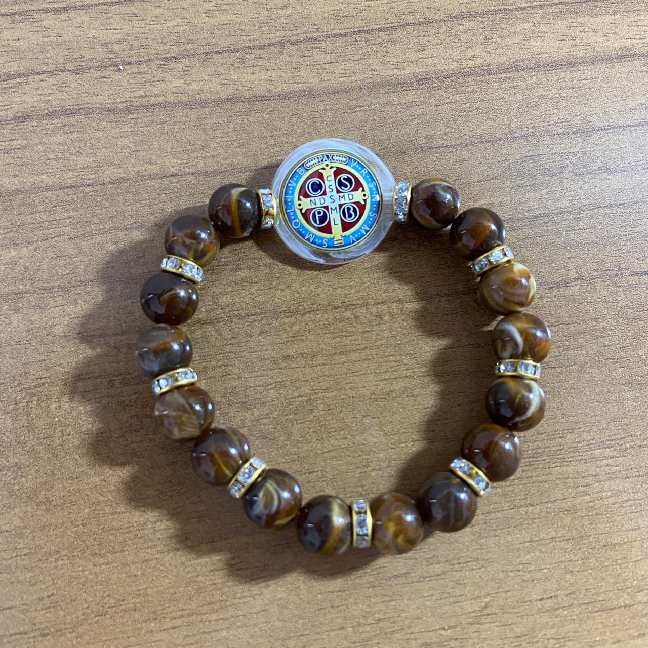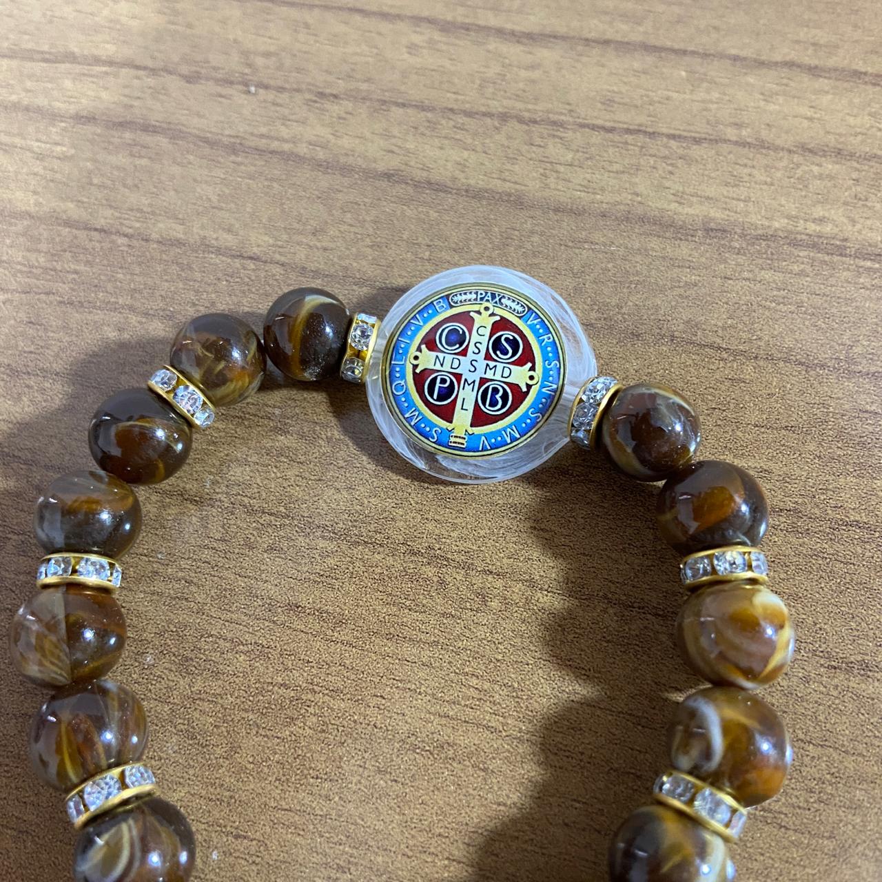 PULSEIRA PÉROLA COM MEDALHA RESINADA MEDALHA SÃO BENTO (03 UNIDADES)