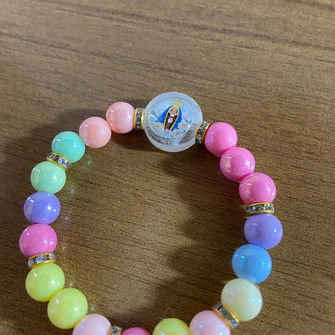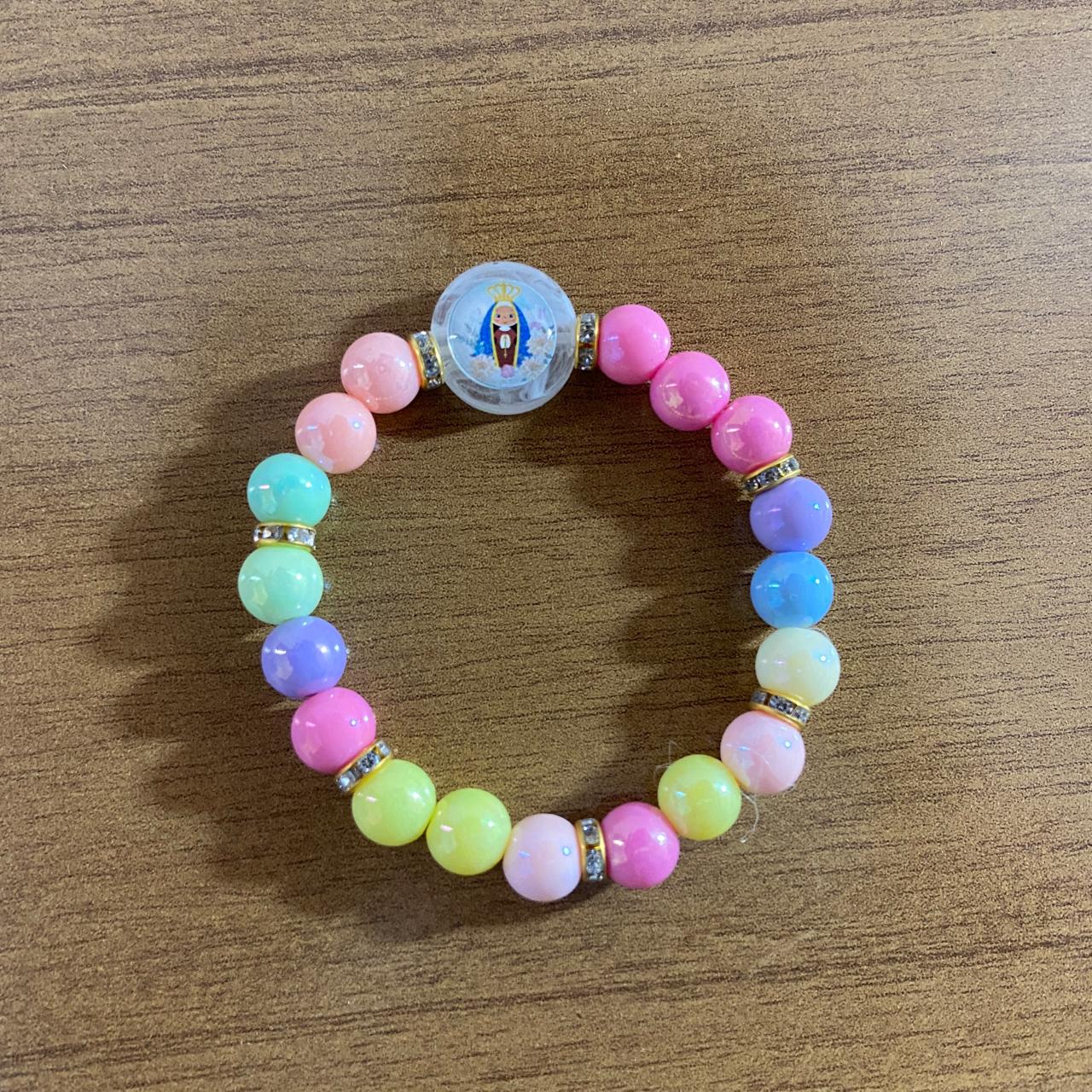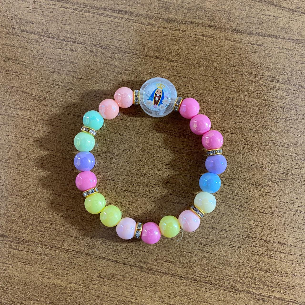 PULSEIRA PÉROLA INFANTIL COM MEDALHA RESINADA NOSSA SENHORA APARECIDA (03 UNIDADES)