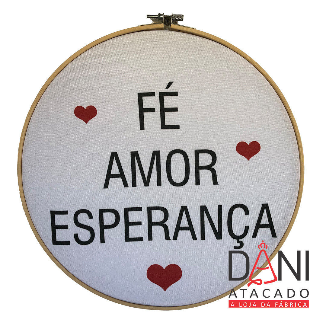 QUADRO DE TECIDO COM MOLDURA DE BAMBU FÉ AMOR ESPERANÇA (1 UNIDADE)