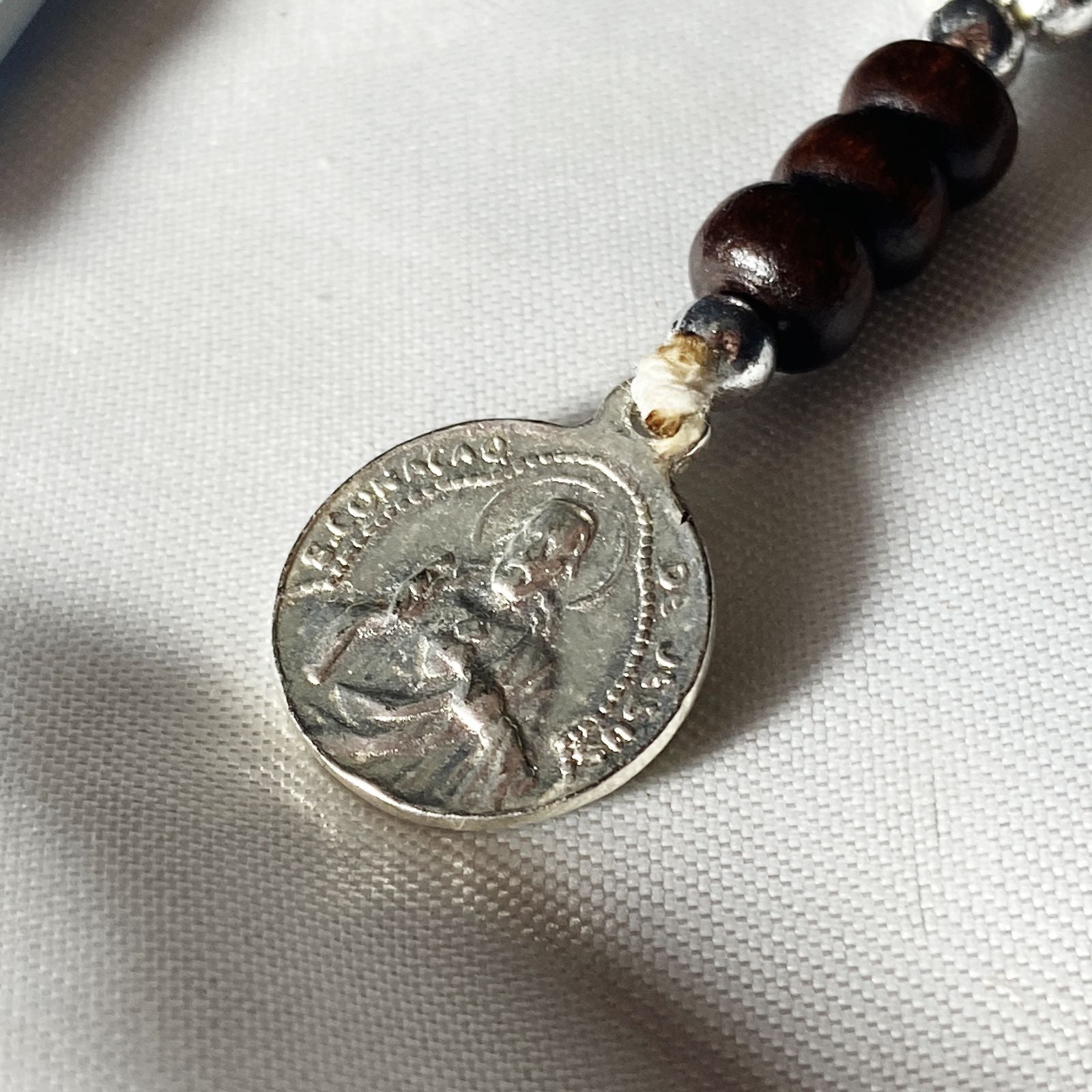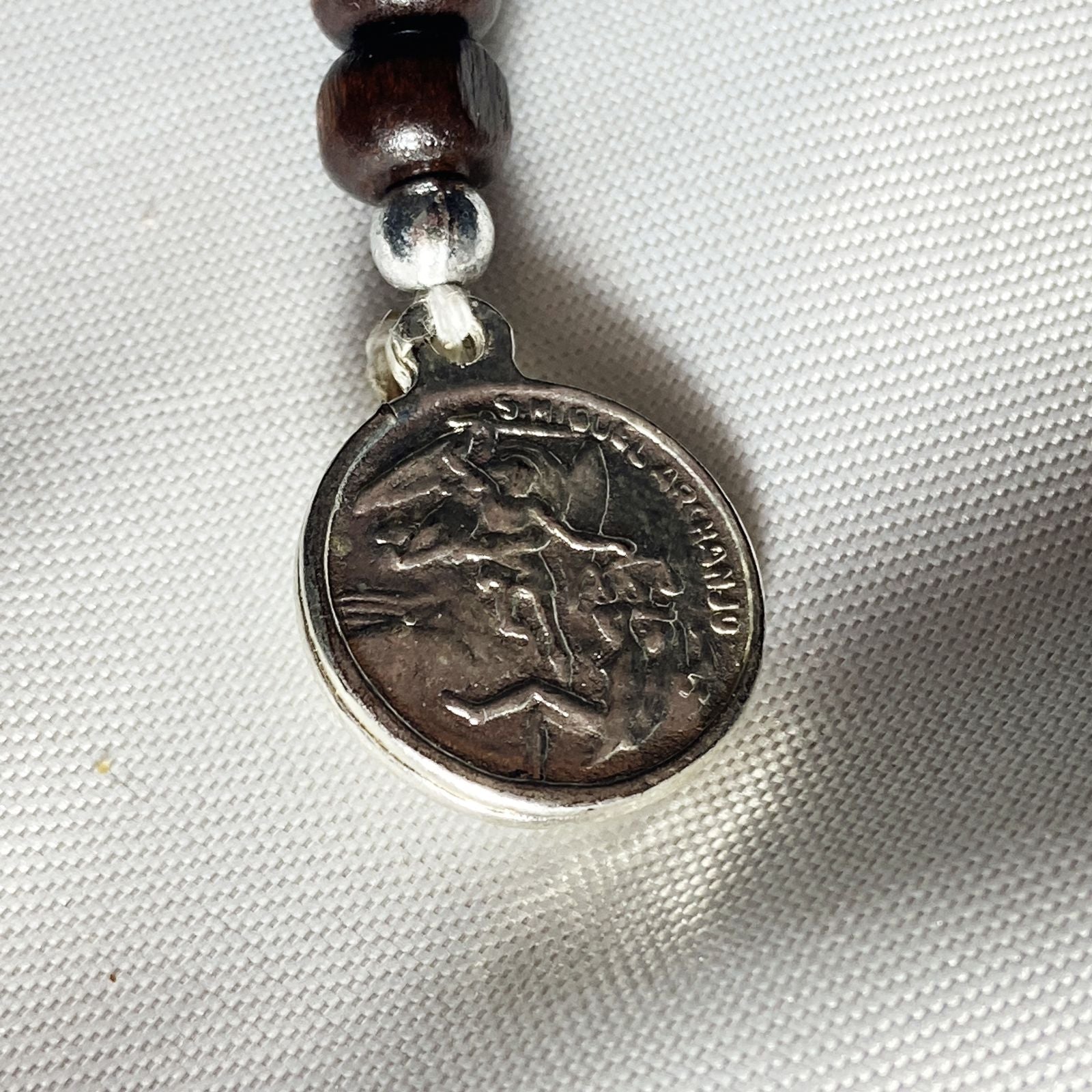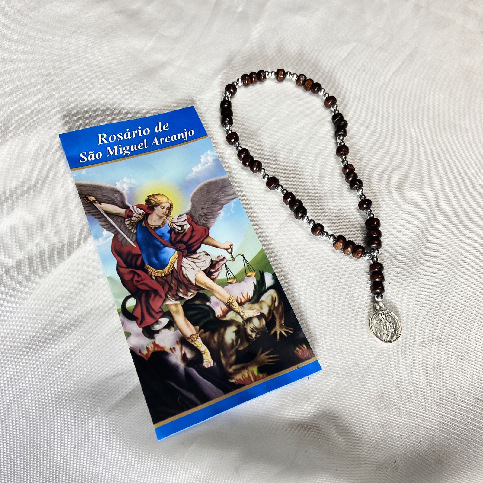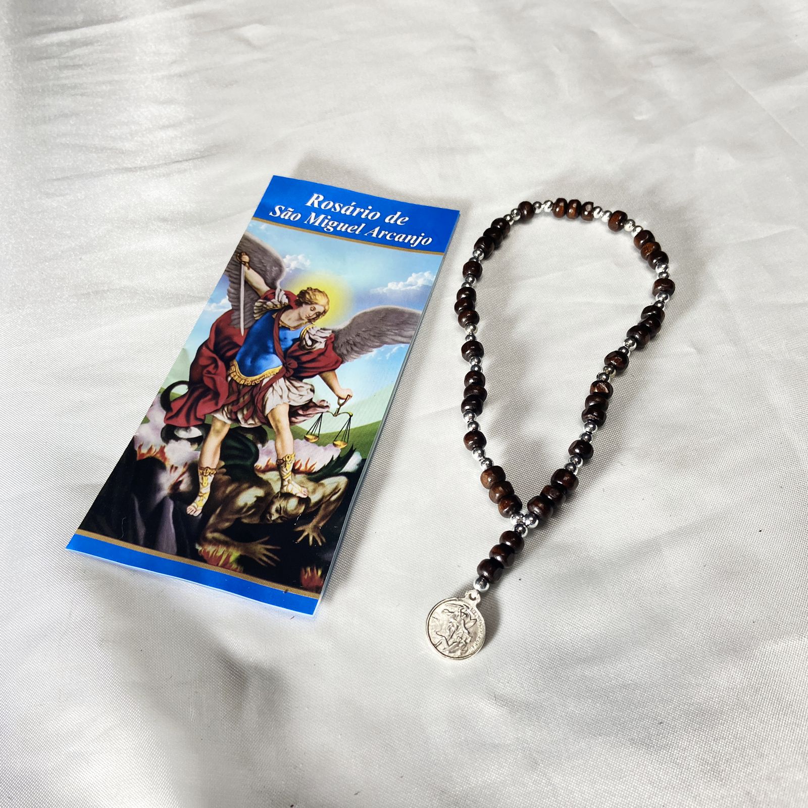 ROSÁRIO DE MADEIRA SÃO MIGUEL ARCANJO PRATEADO (1 UNIDADE)