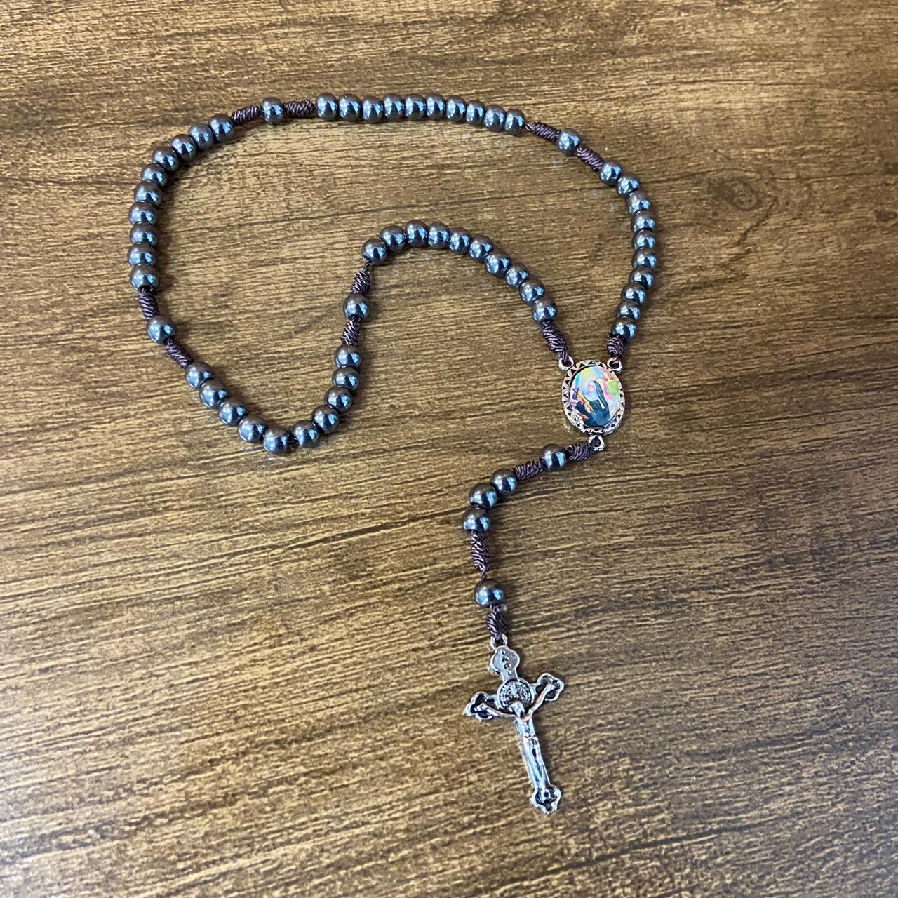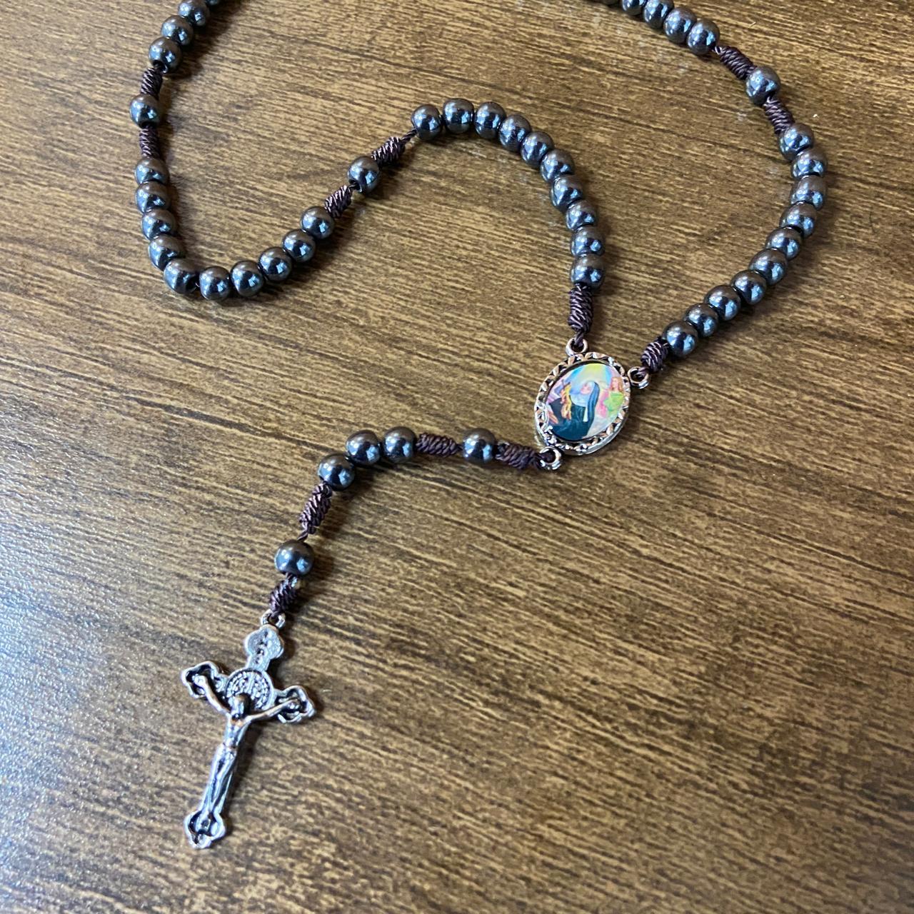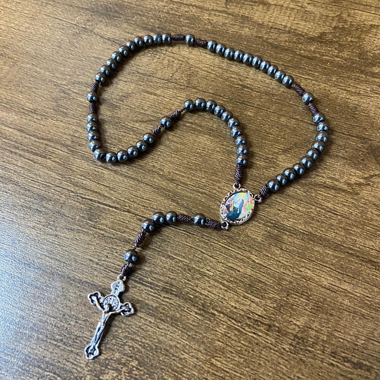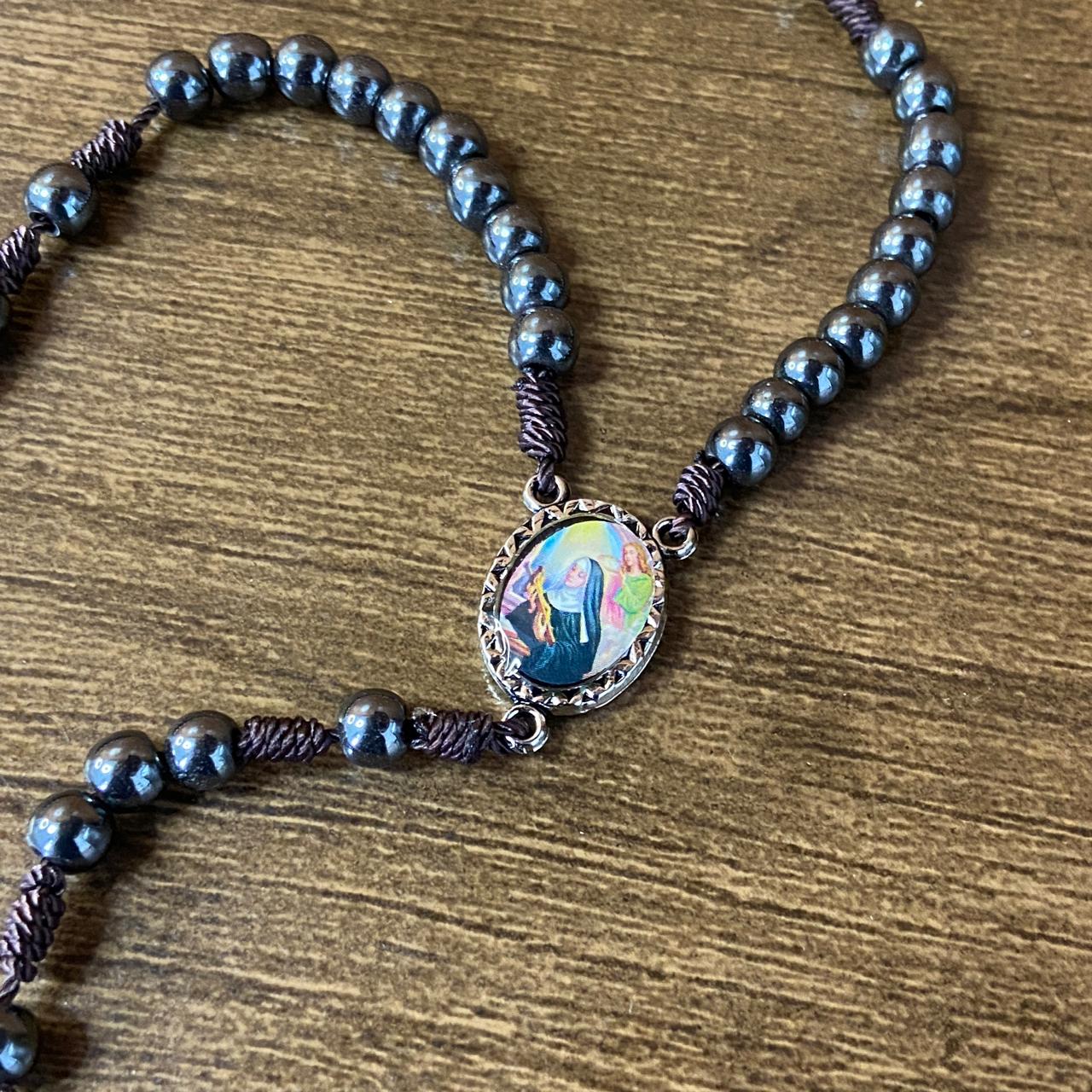 TERÇO DE HEMATITA SANTA RITA DE CÁSSIA 6MM (3 UNIDADES)