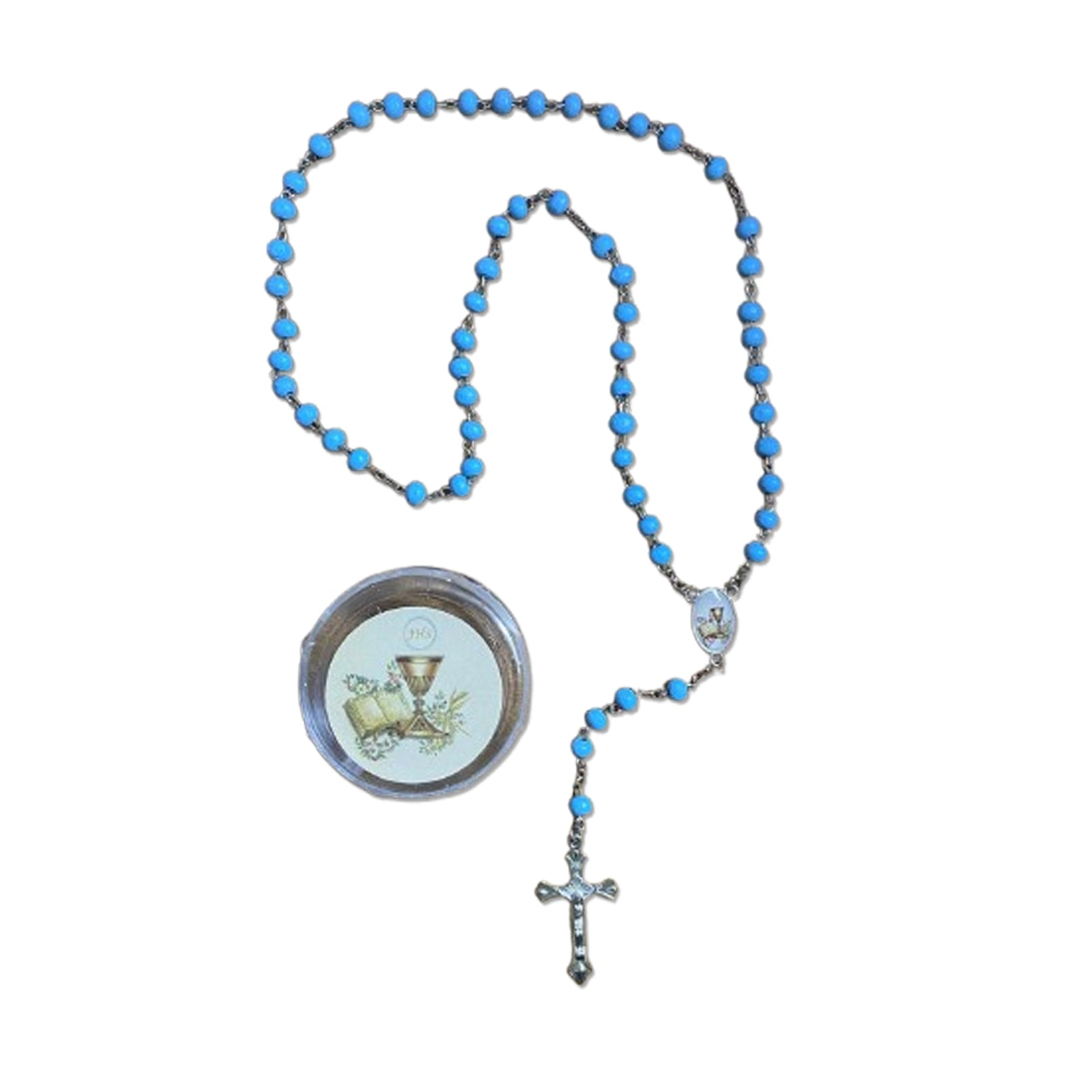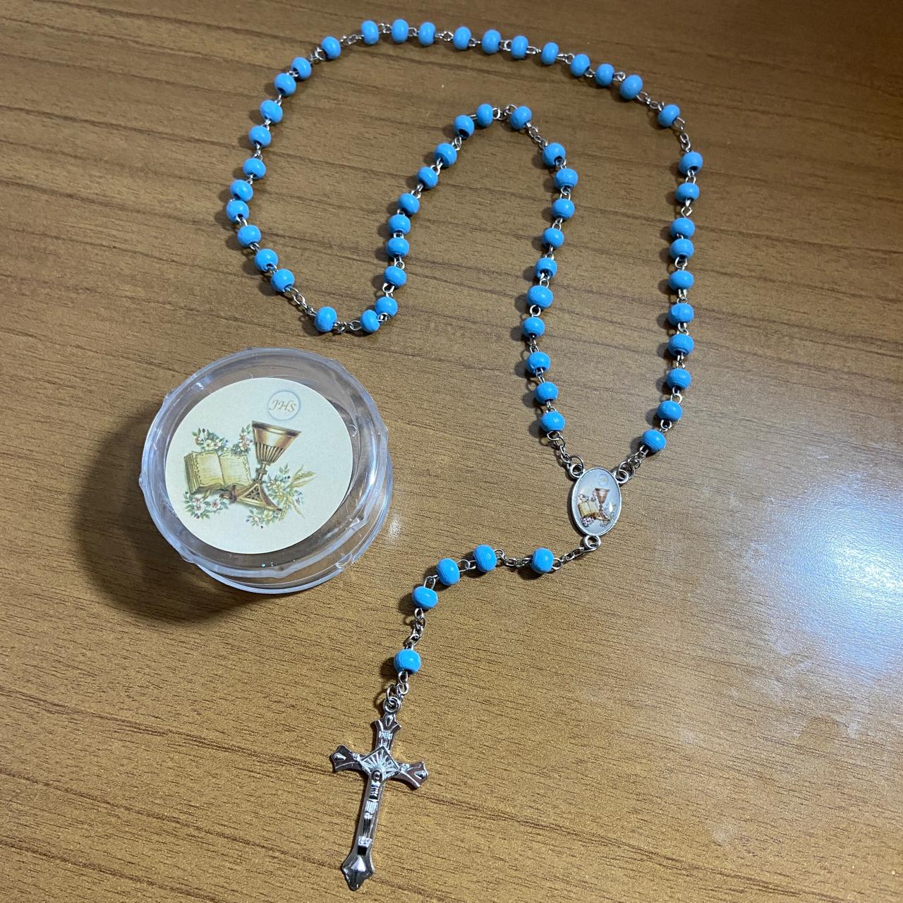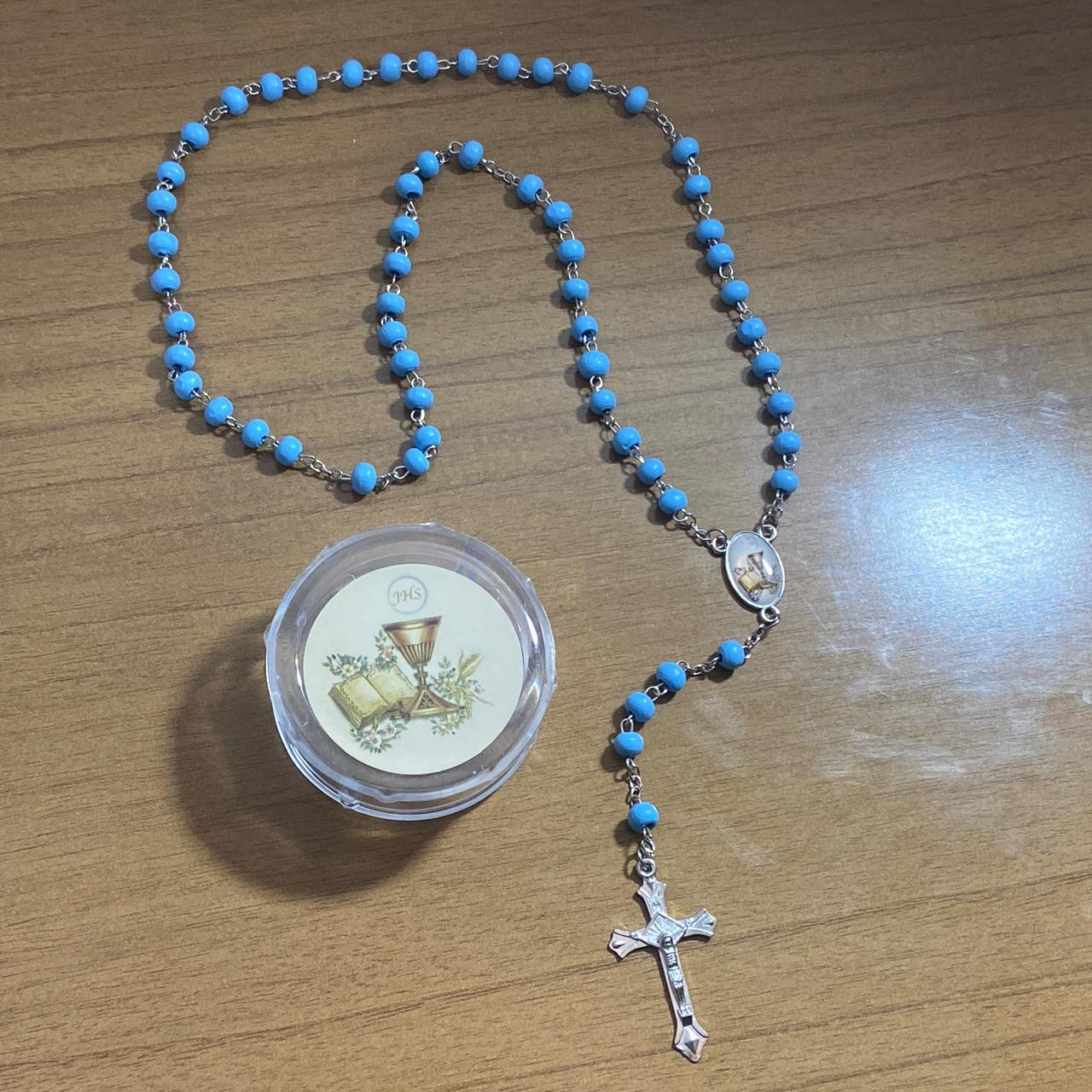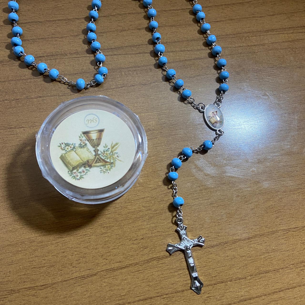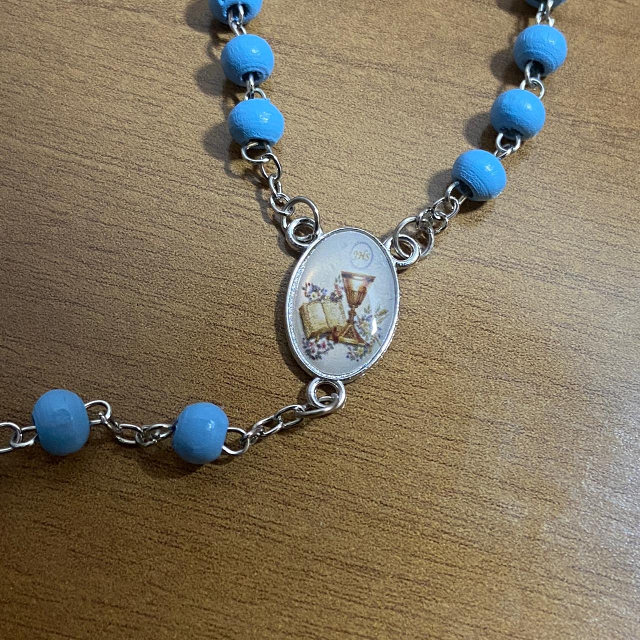 TERÇO DE MADEIRA AZUL EUCARISTIA 06MM (6 UNIDADES)
