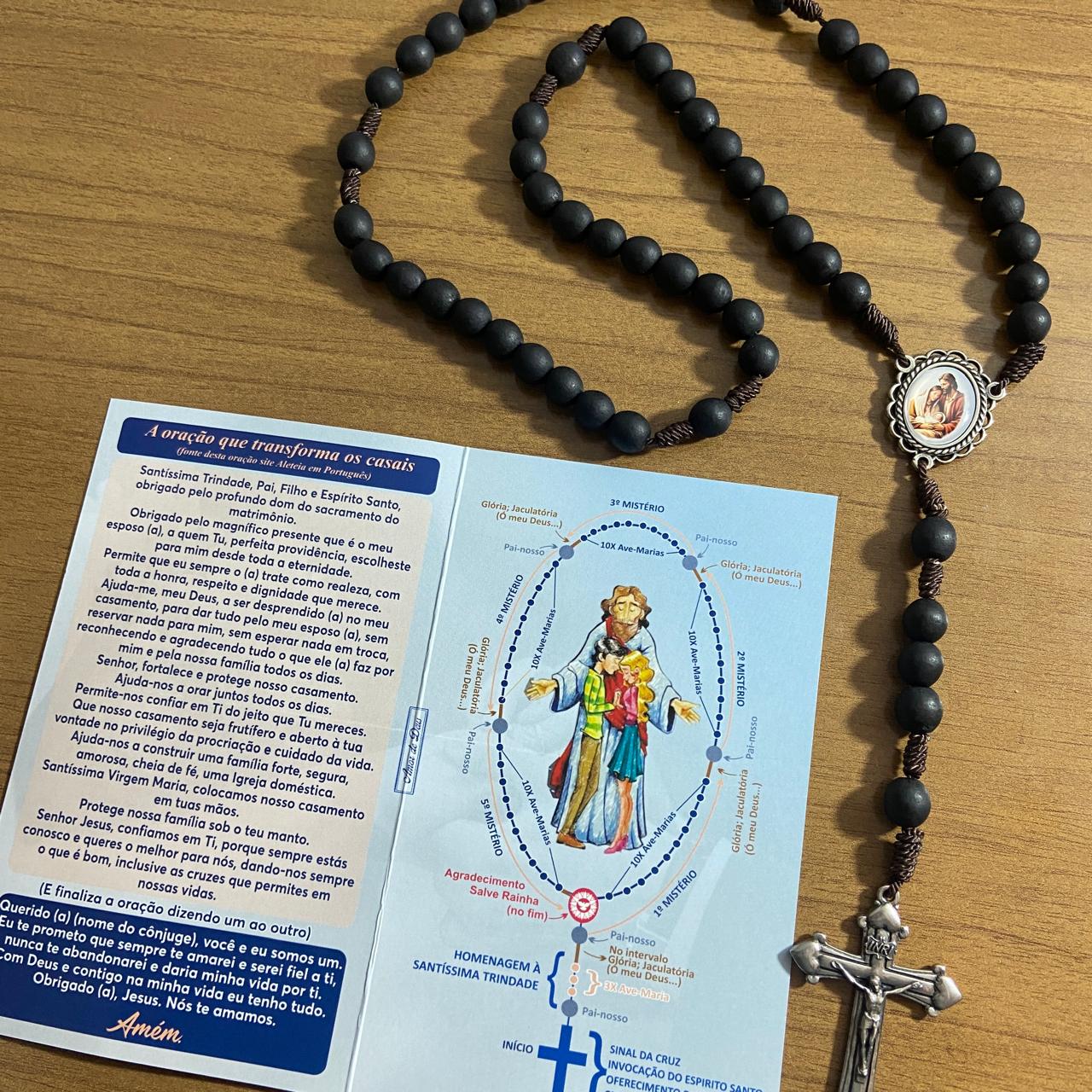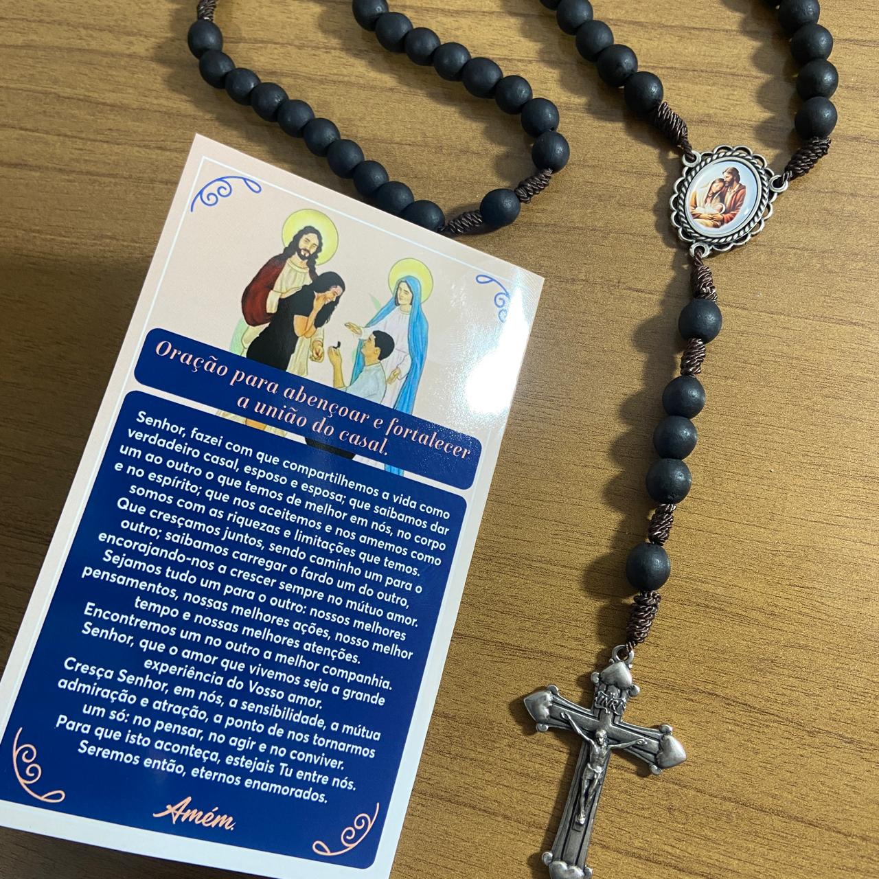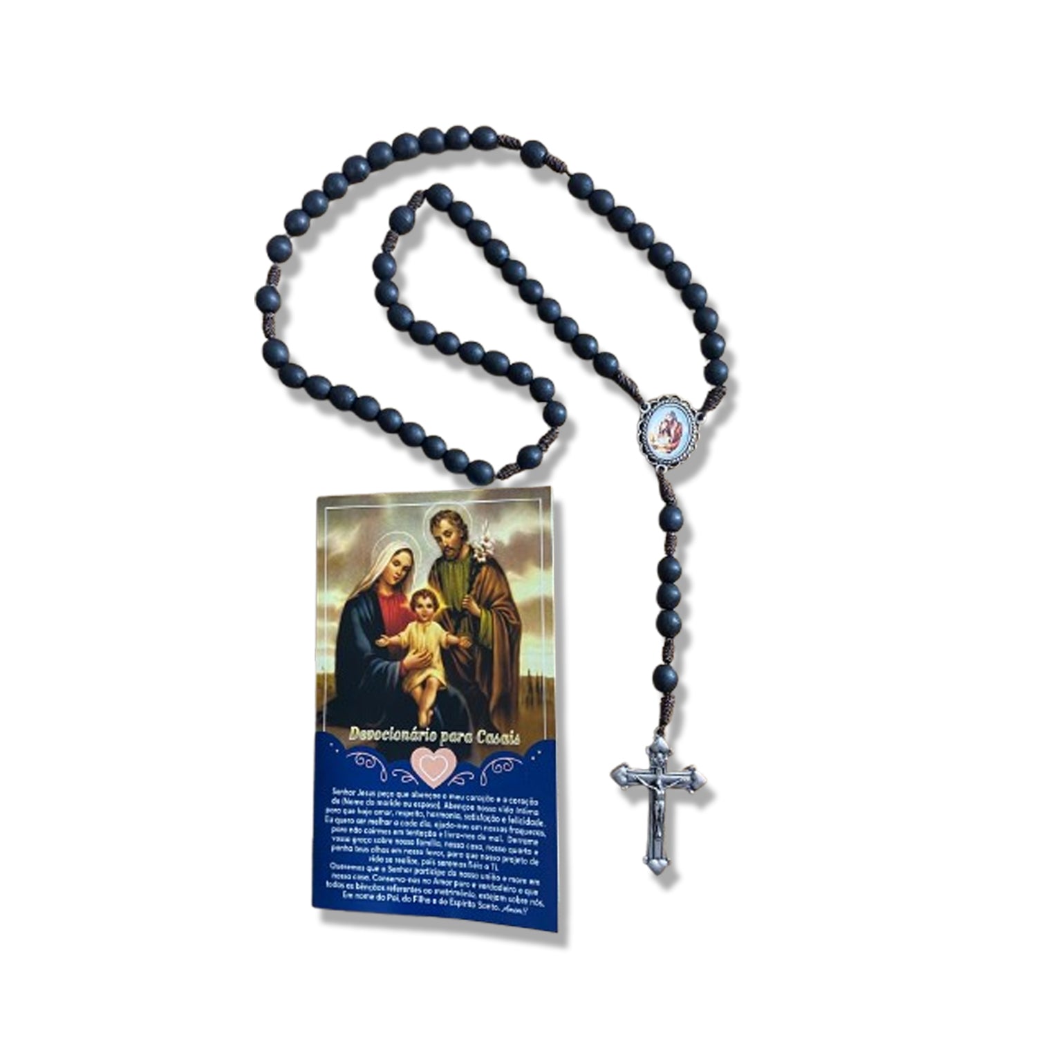 TERÇO DE MADEIRA PRETO FOSCO SAGRADA FAMÍLIA 10MM (1 UNIDADE)