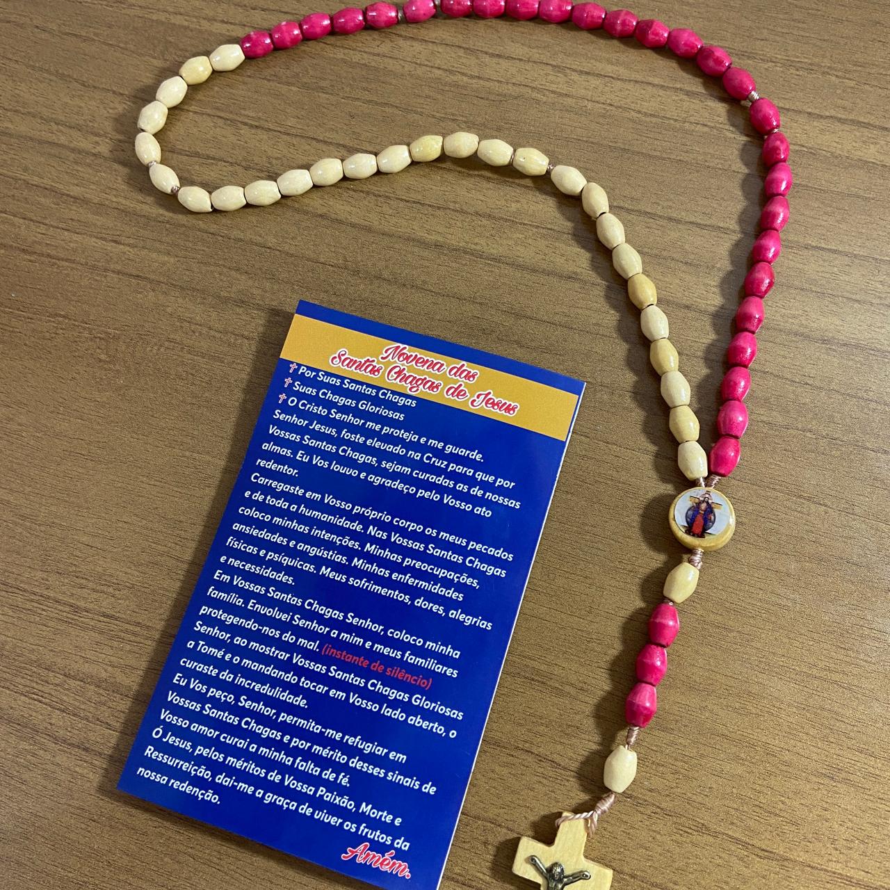 TERÇO DE MADEIRA SANTAS CHAGAS 8MM MOD3 (3 UNIDADES)