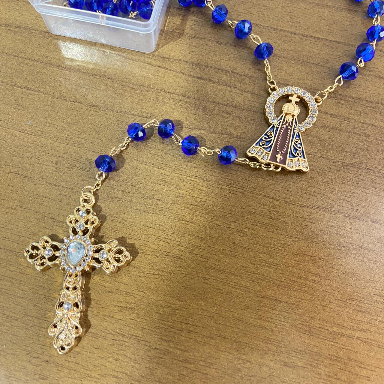 TERÇO DE NOIVA CRISTAL AZUL TRANSPARENTE NOSSA SENHORA APARECIDA 06MM (1 UNIDADE)