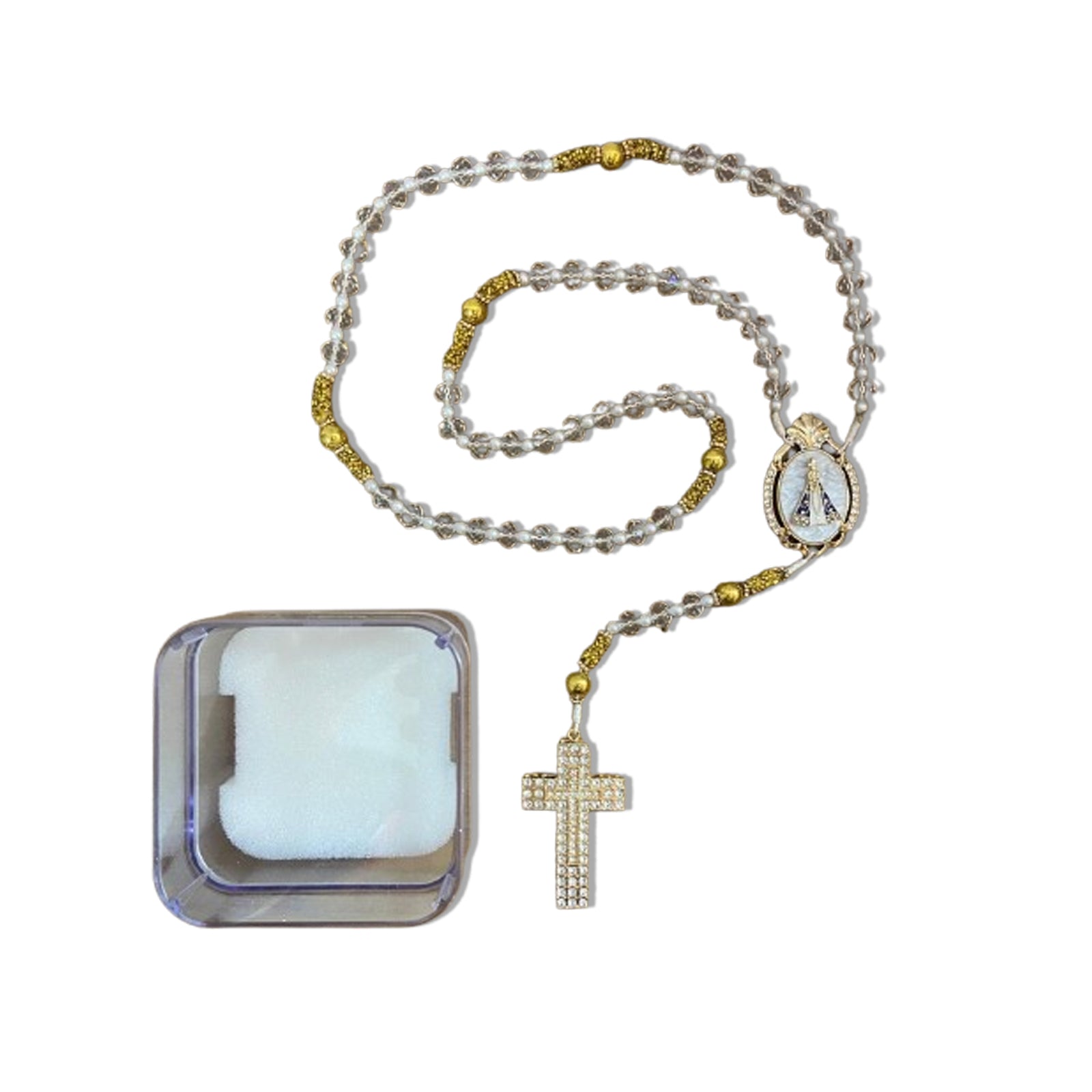 TERÇO DE NOIVA CRISTAL NOSSA SENHORA APARECIDA MOD9 10MM (1 UNIDADE)