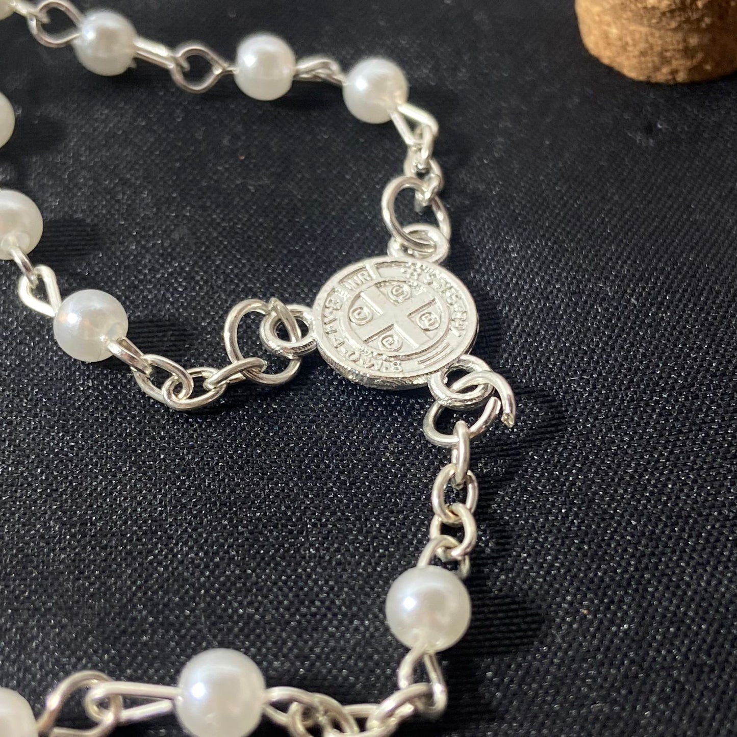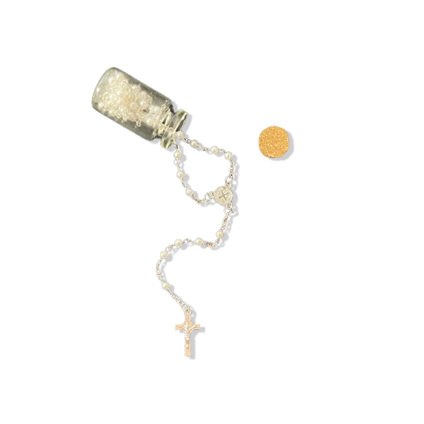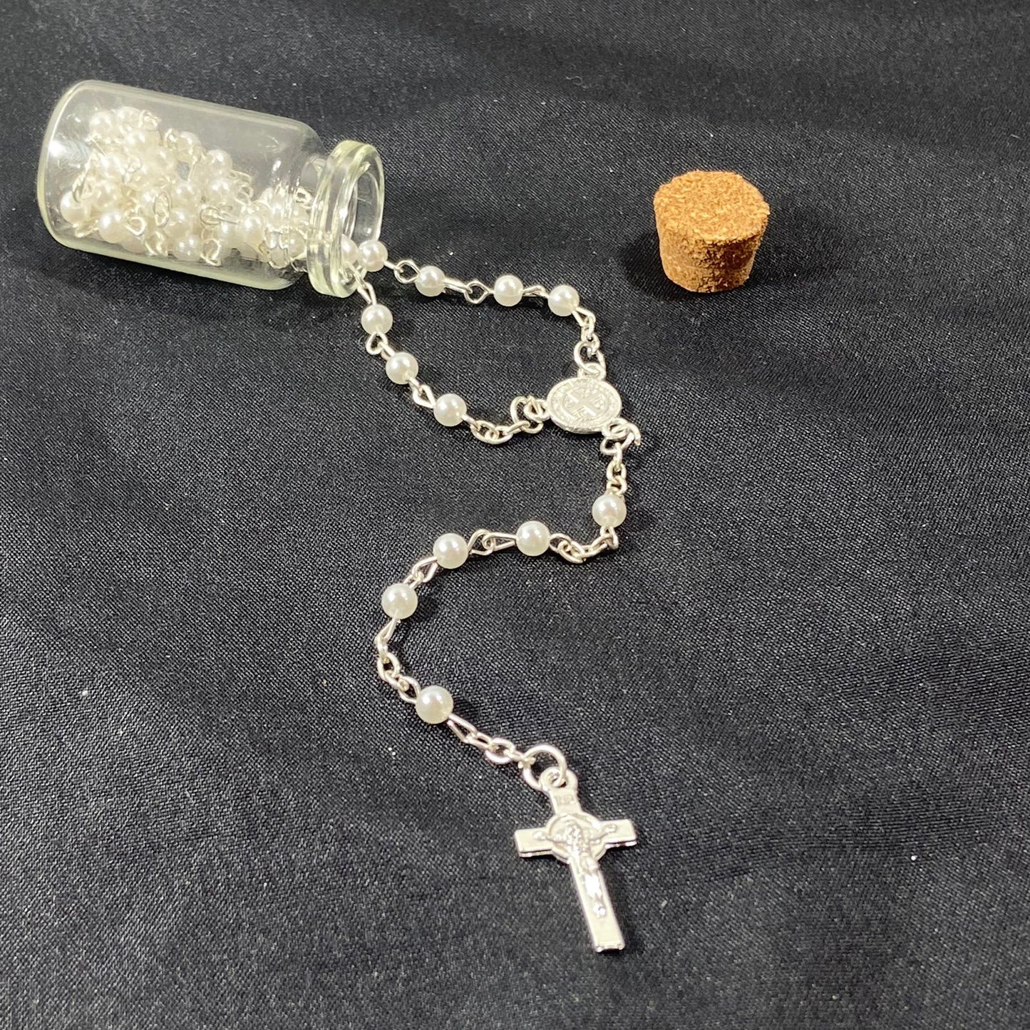 TERÇO NA GARRAFA SÃO BENTO PÉROLA 4MM (12 UNIDADES)