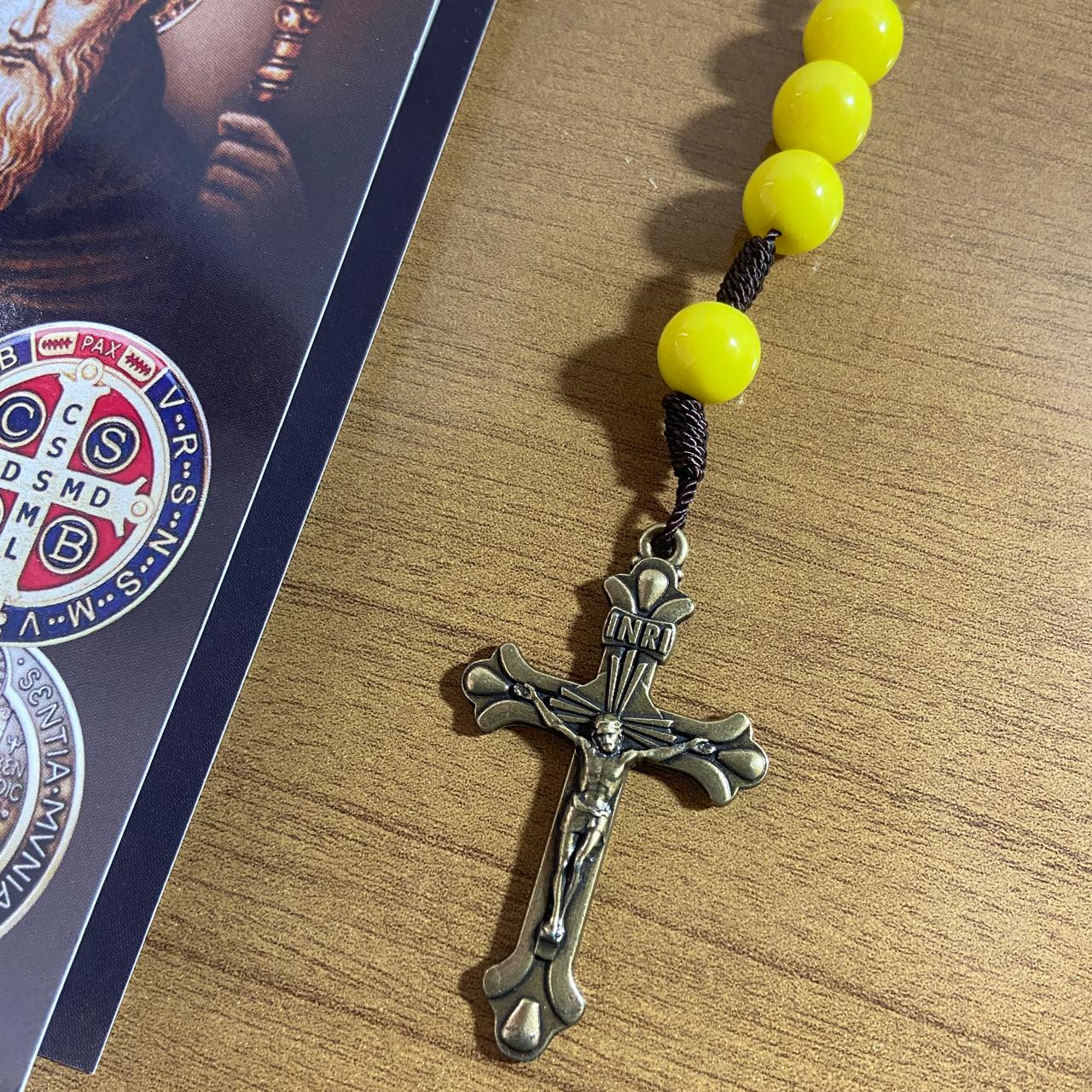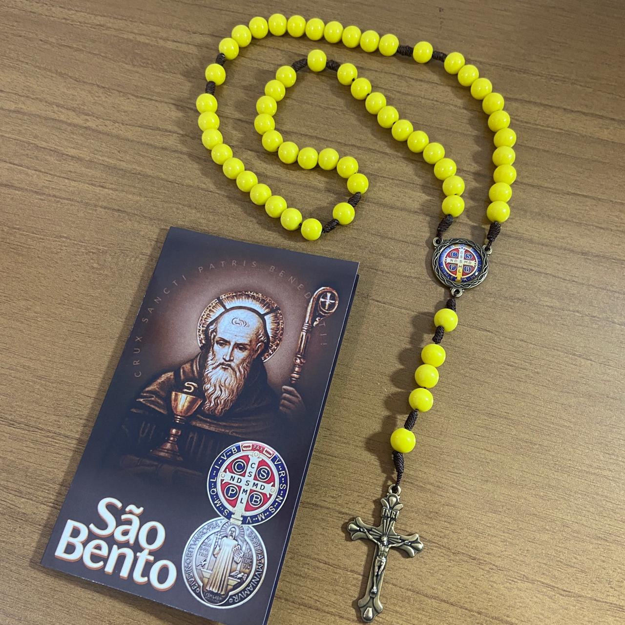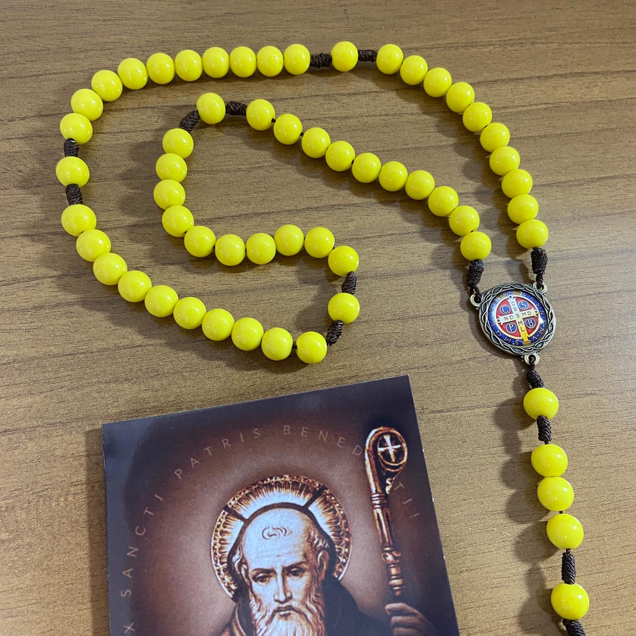 TERÇO PÉROLA AMARELA CAMPISTA MEDALHA SÃO BENTO 10MM (1 UNIDADE)