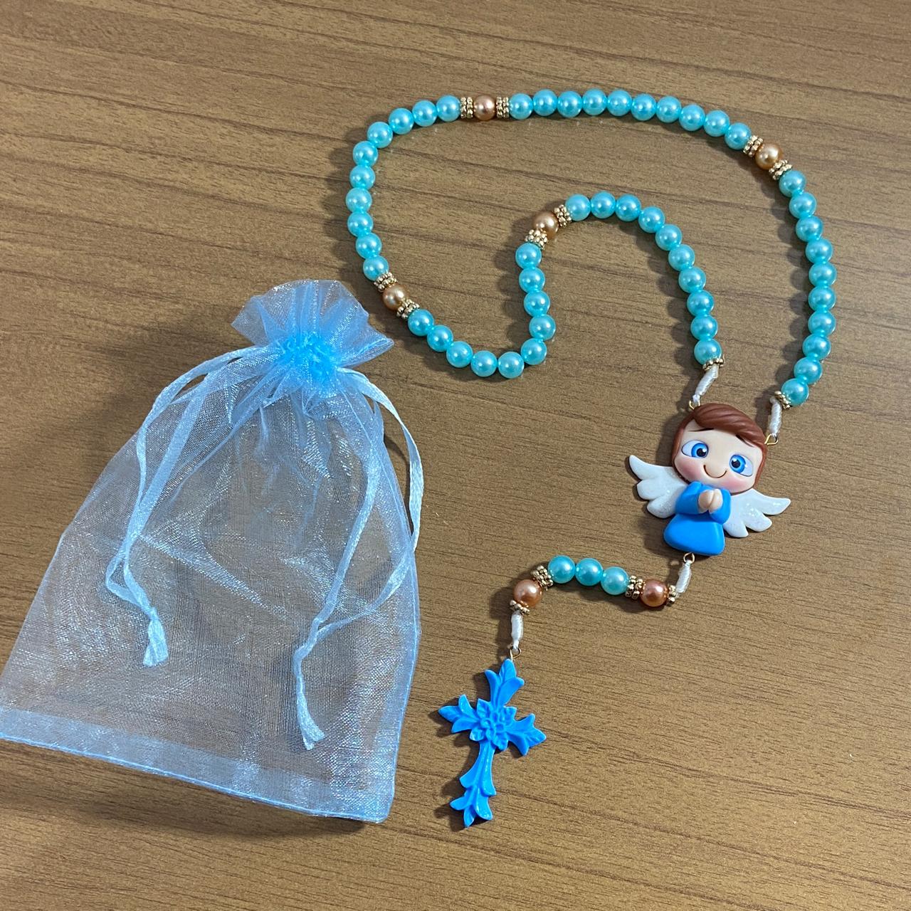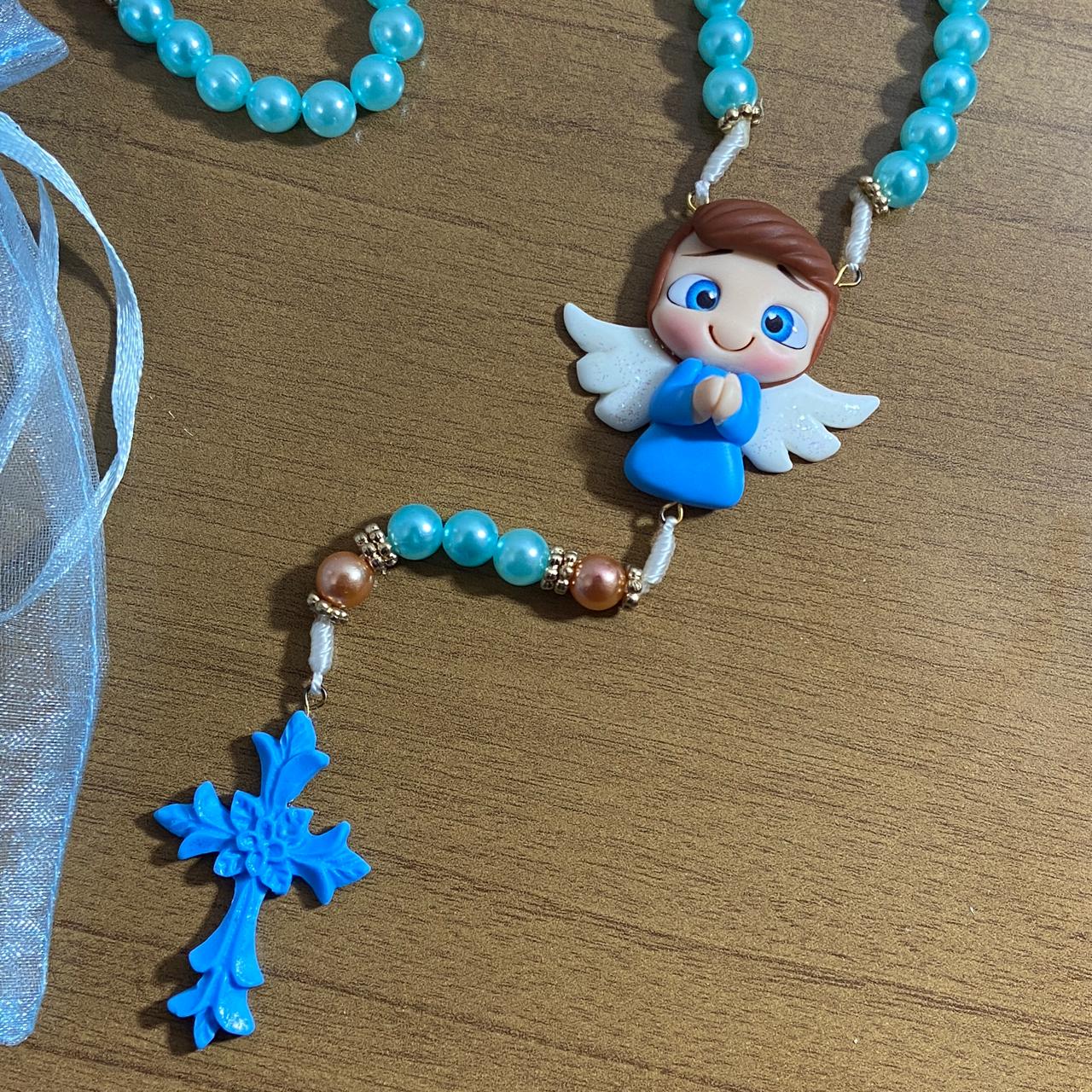 TERÇO PÉROLA AZUL ANJINHO AZUL DE BISCUIT (1 UNIDADE)
