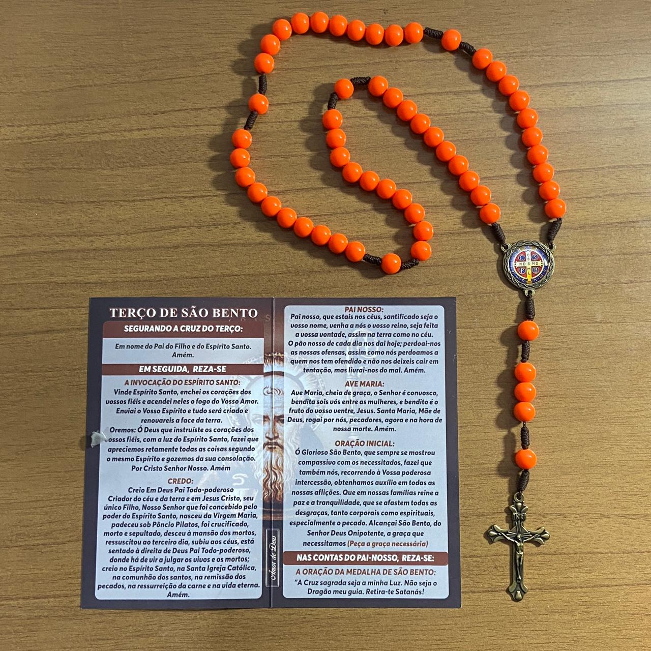 TERÇO PÉROLA LARANJA CAMPISTA MEDALHA SÃO BENTO 10MM (1 UNIDADE)