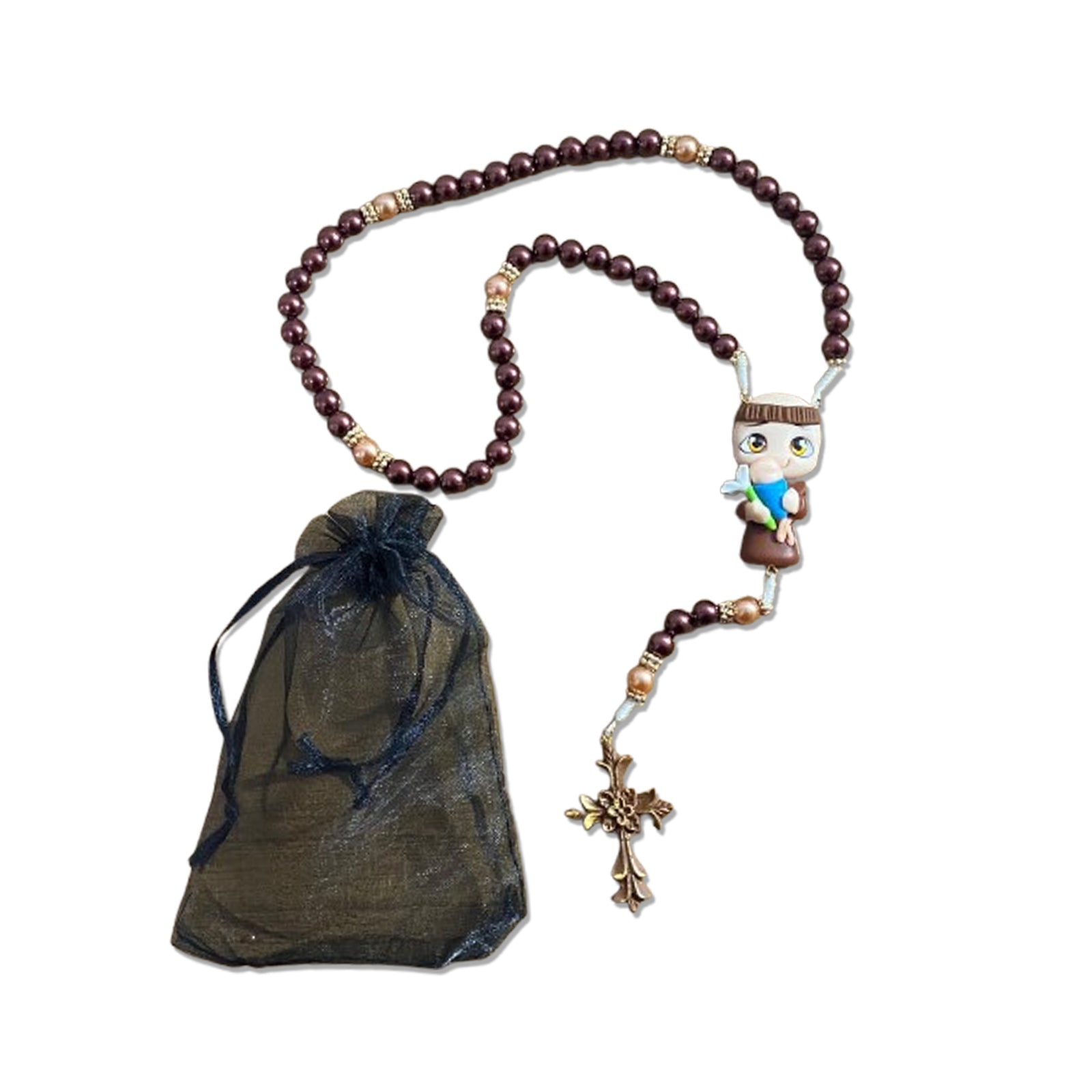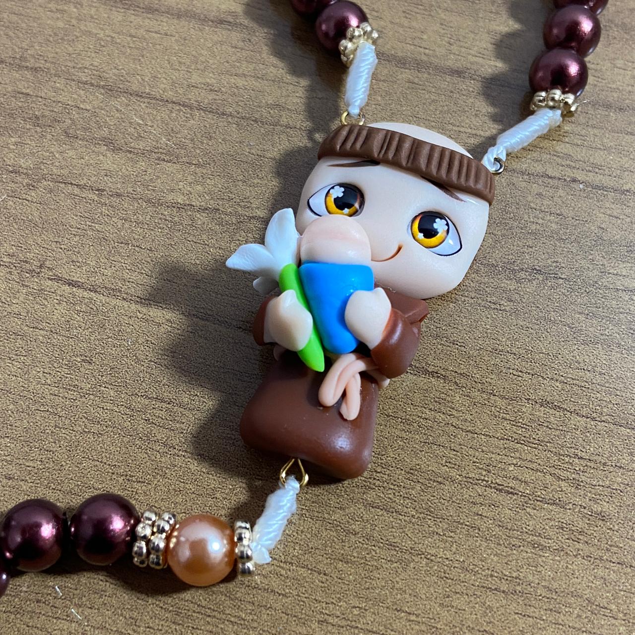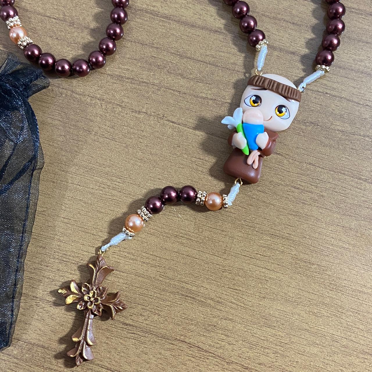 TERÇO PÉROLA MARROM SANTO ANTÔNIO DE BISCUIT (1 UNIDADE)
