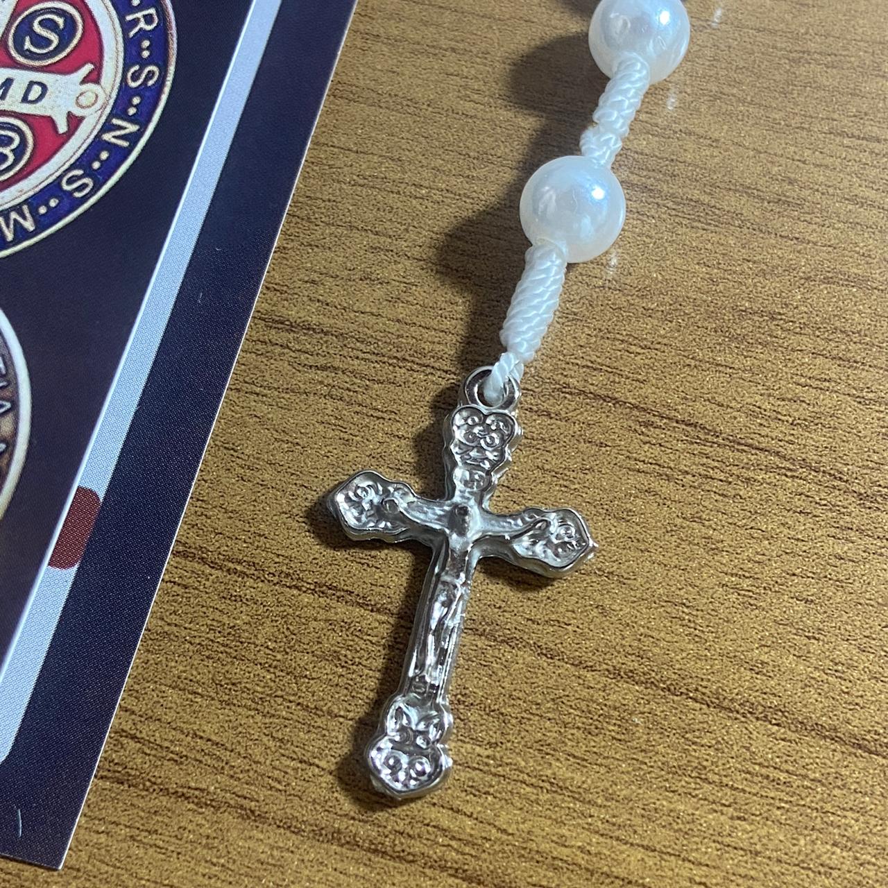 TERÇO PÉROLA MEDALHA SÃO BENTO 8MM (1 UNIDADE)