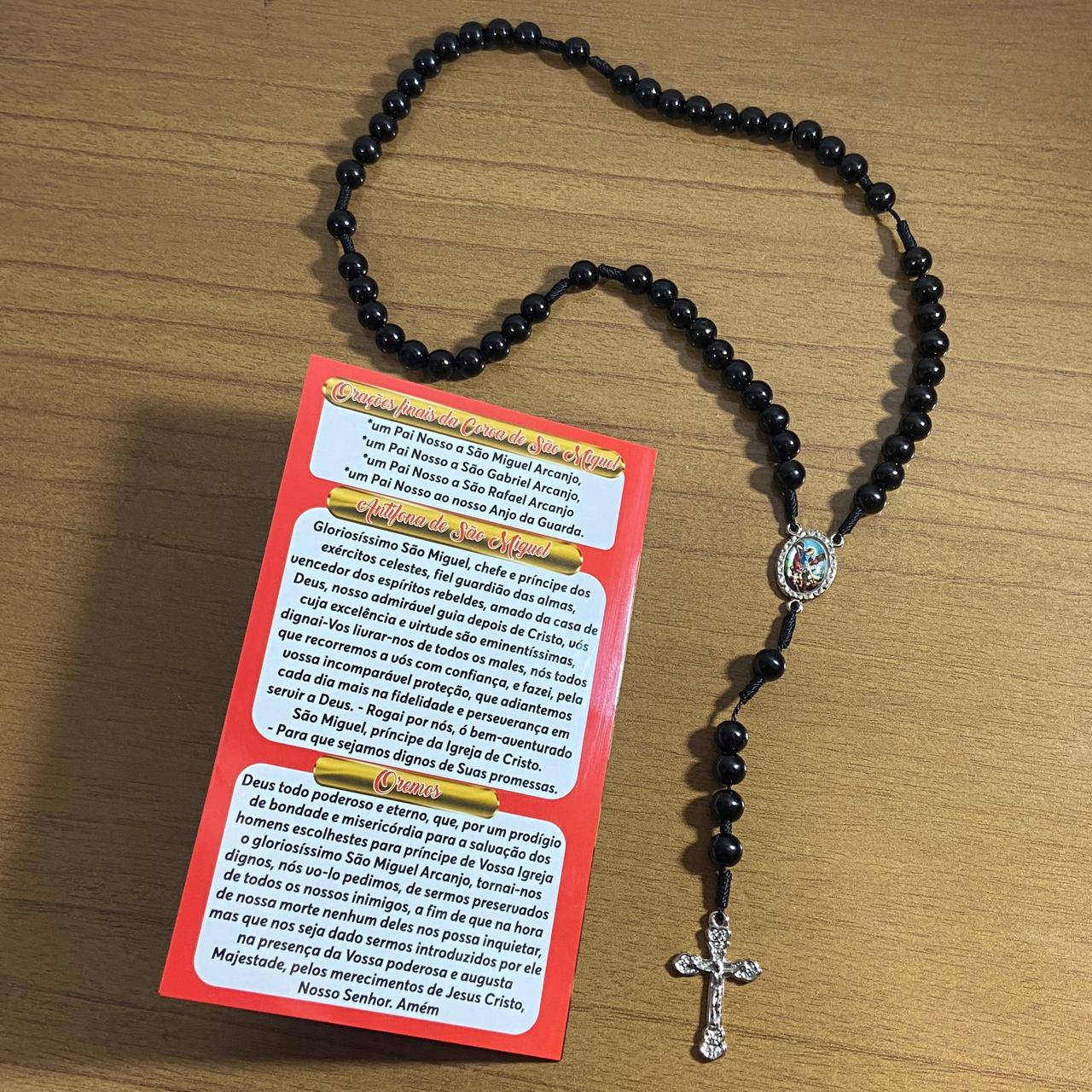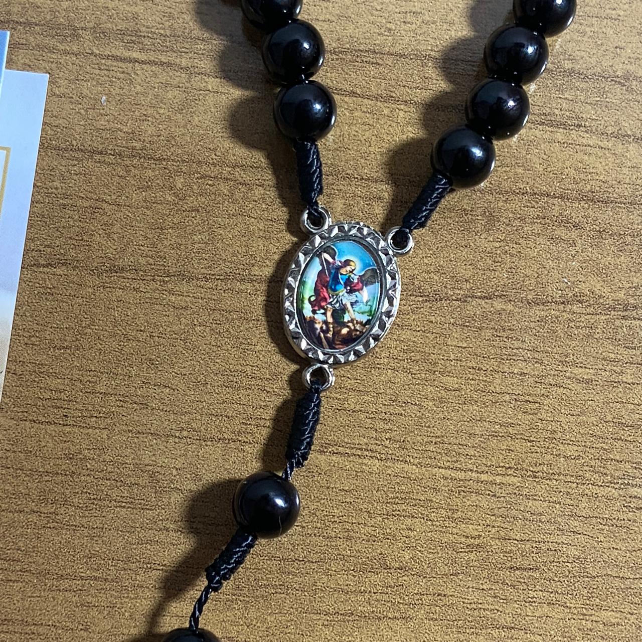 TERÇO PÉROLA PRETA SÃO MIGUEL ARCANJO 8MM (1 UNIDADE)
