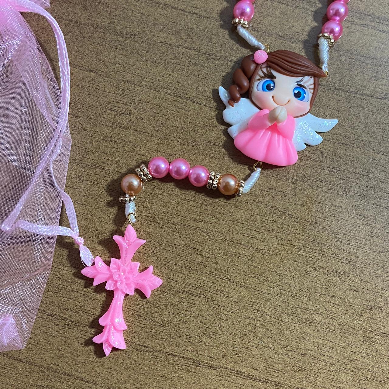 TERÇO PÉROLA ROSA ANJINHO ROSA DE BISCUIT (1 UNIDADE)