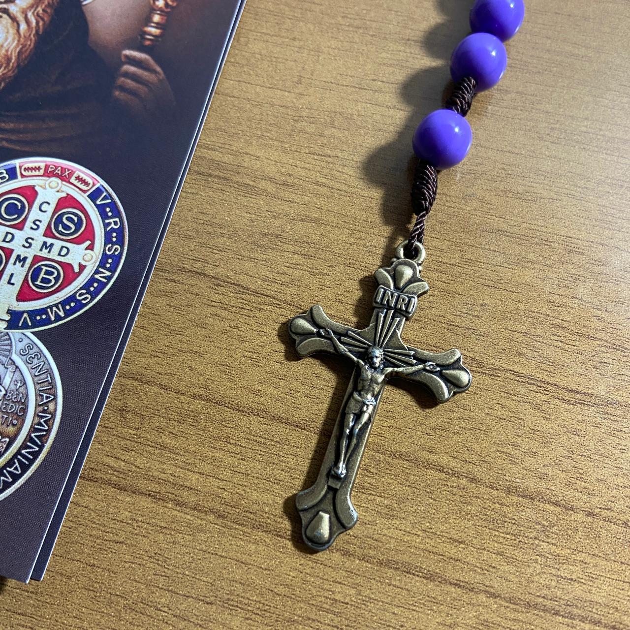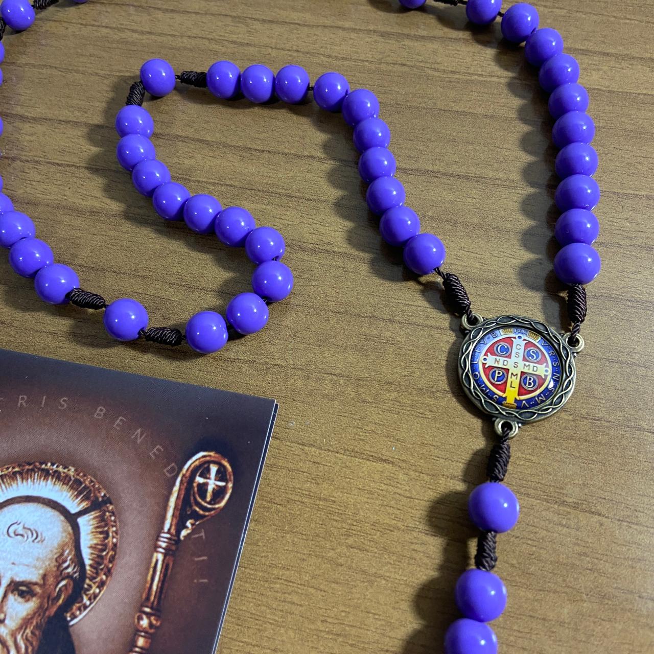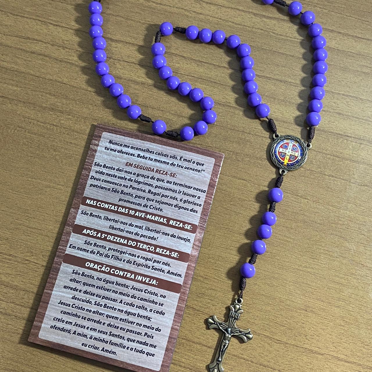 TERÇO PÉROLA ROXA CAMPISTA MEDALHA SÃO BENTO 10MM (1 UNIDADE)
