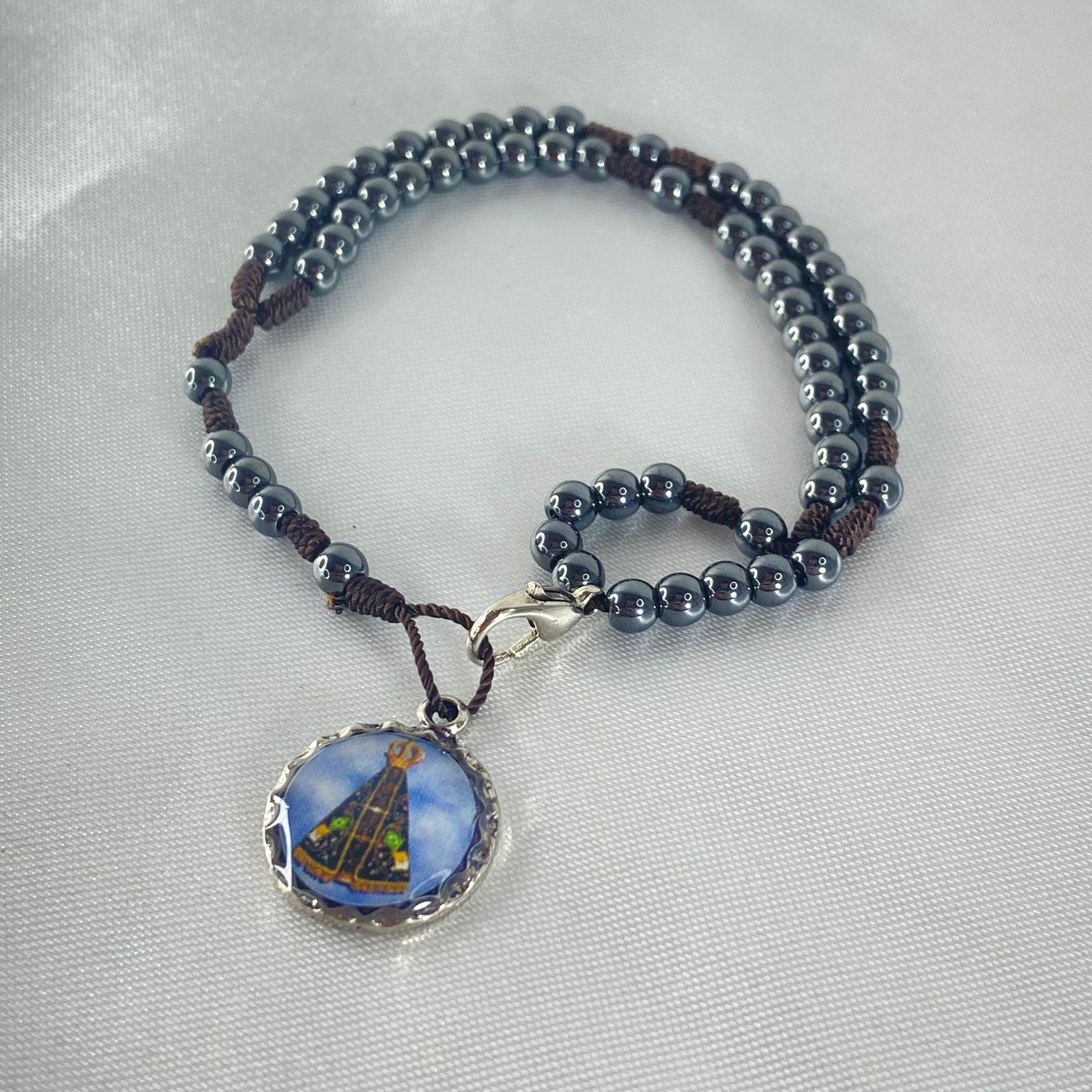 TERÇO PULSEIRA HEMATITA NOSSA SENHORA APARECIDA 4MM (6 UNIDADES)