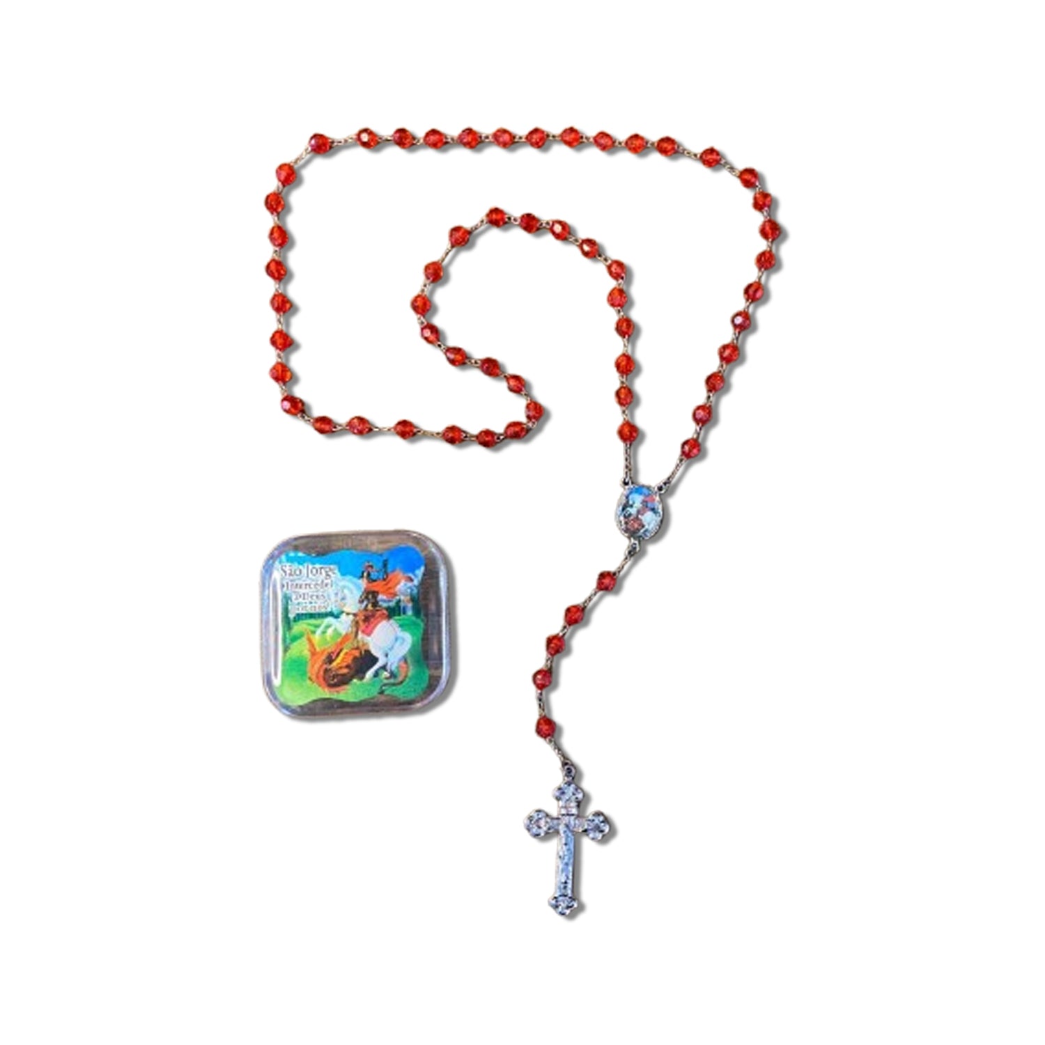 TERÇO SEMICRISTAL NA CAIXINHA SÃO JORGE 6MM (6 UNIDADES)