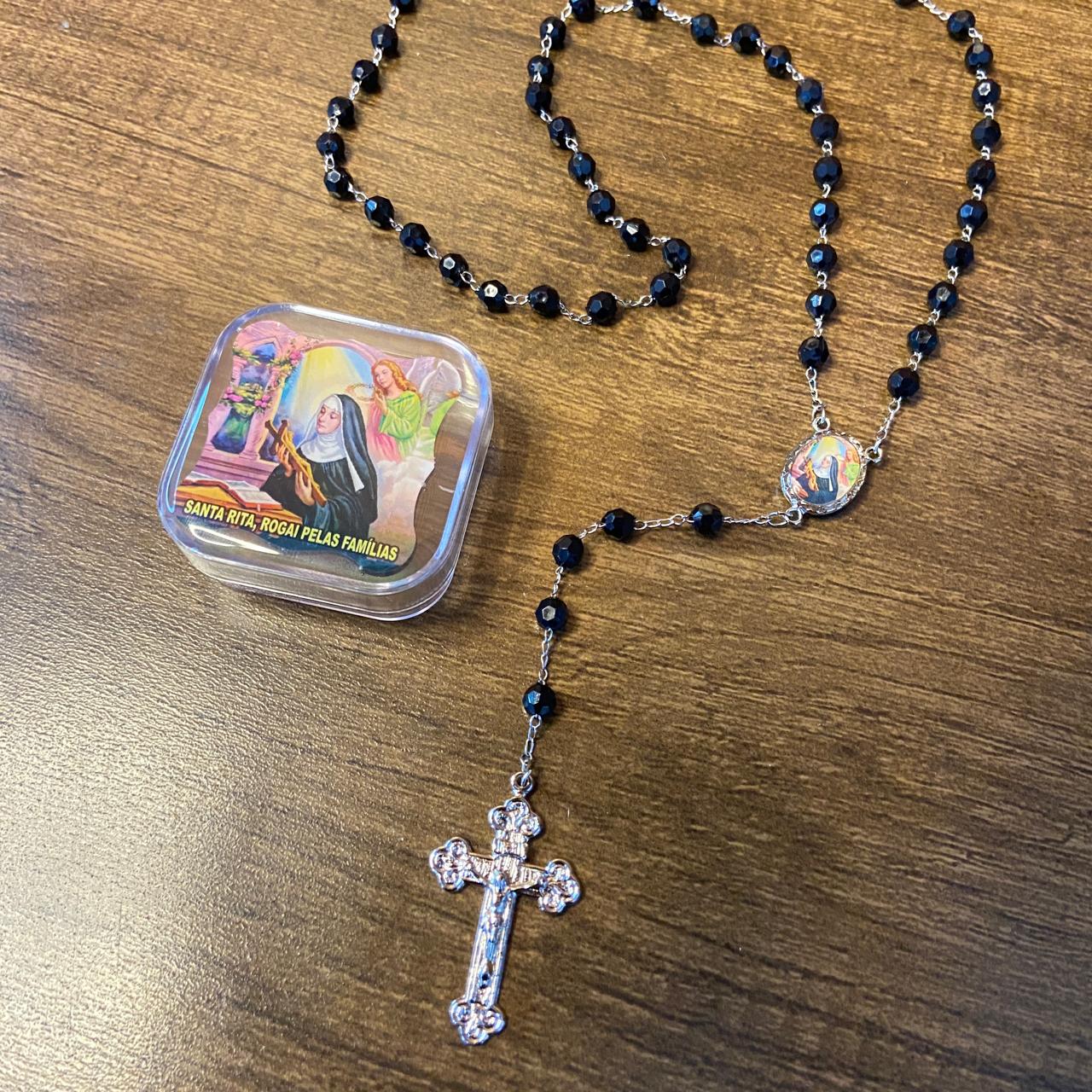 TERÇO SEMICRISTAL NA CAIXINHA SÃO RITA 6MM (6 UNIDADES)