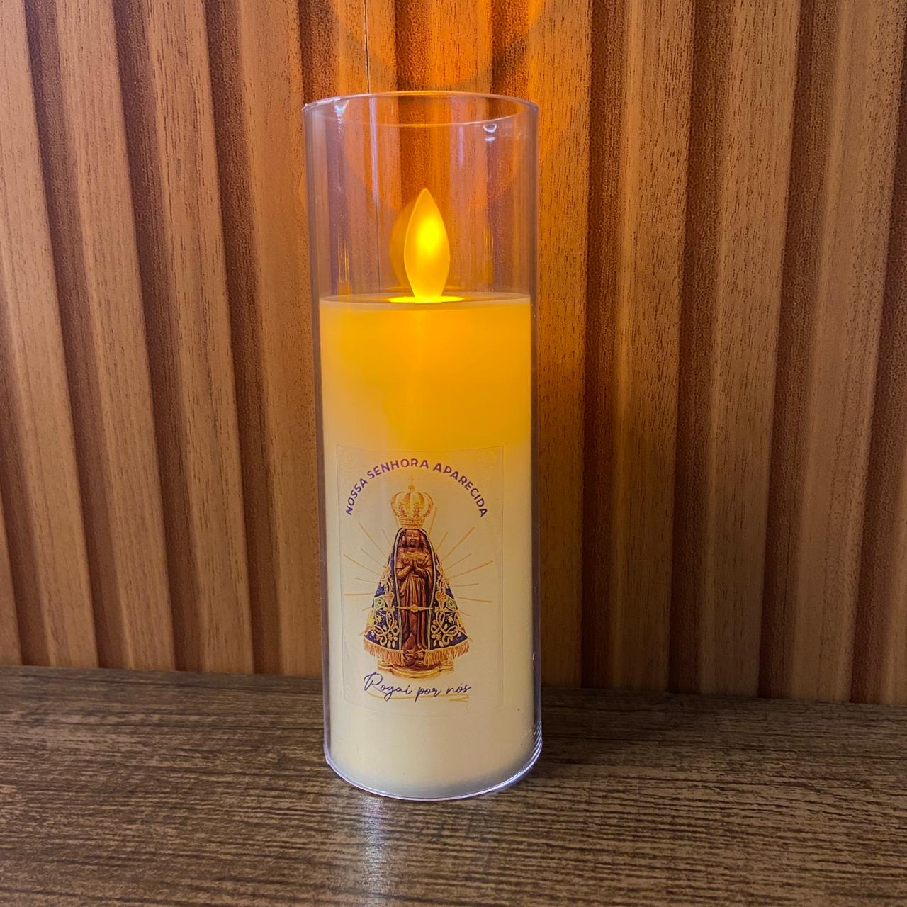 VELA ELETRÔNICA NO COPO DE ACRÍLICO NOSSA SENHORA APARECIDA 15CM (1 UNIDADE)